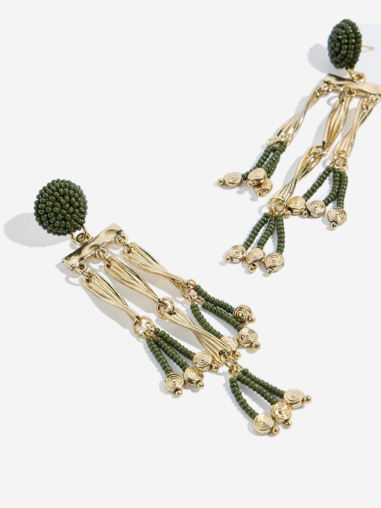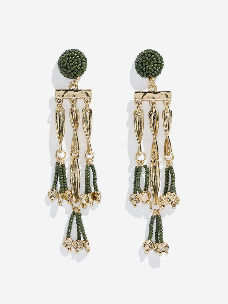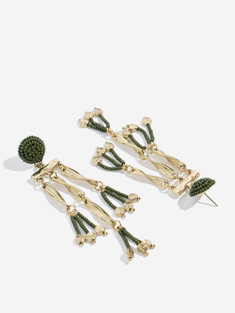 Westside Accessories Gold & Green Beaded Dangler Earrings