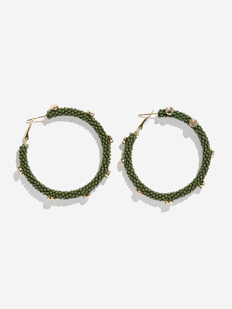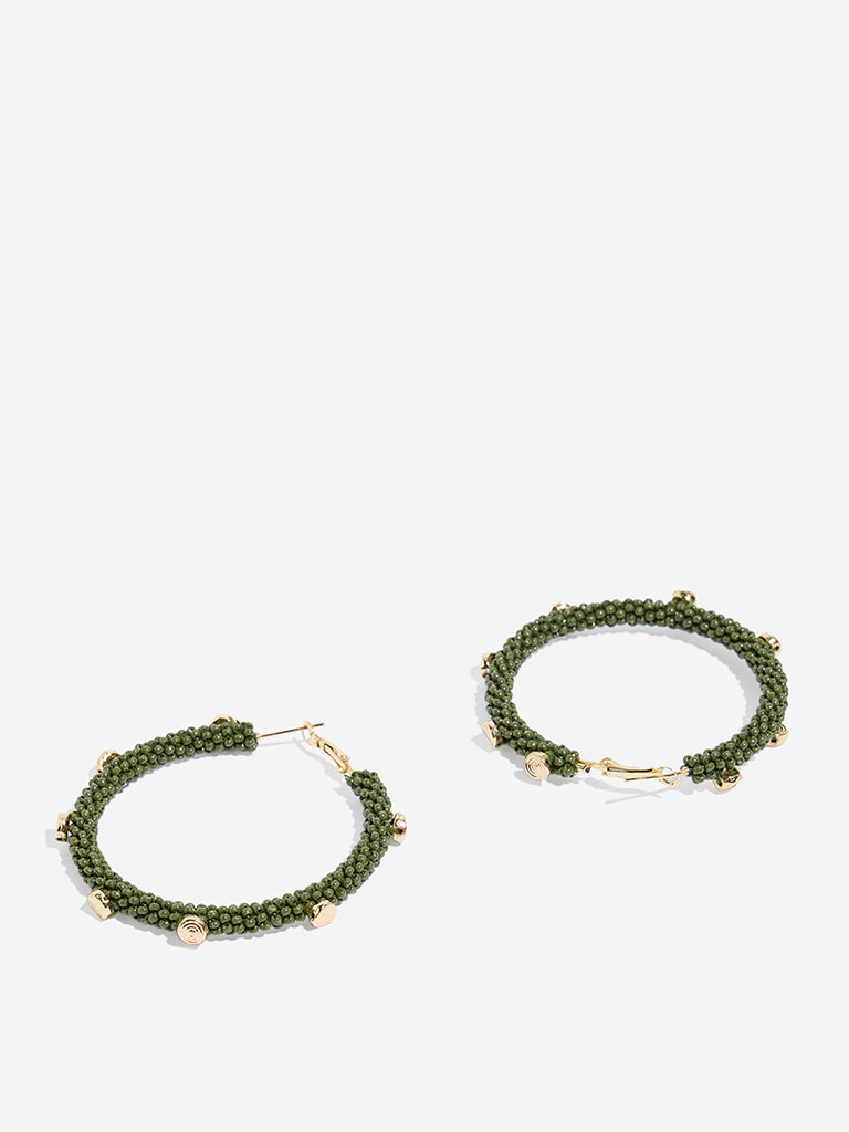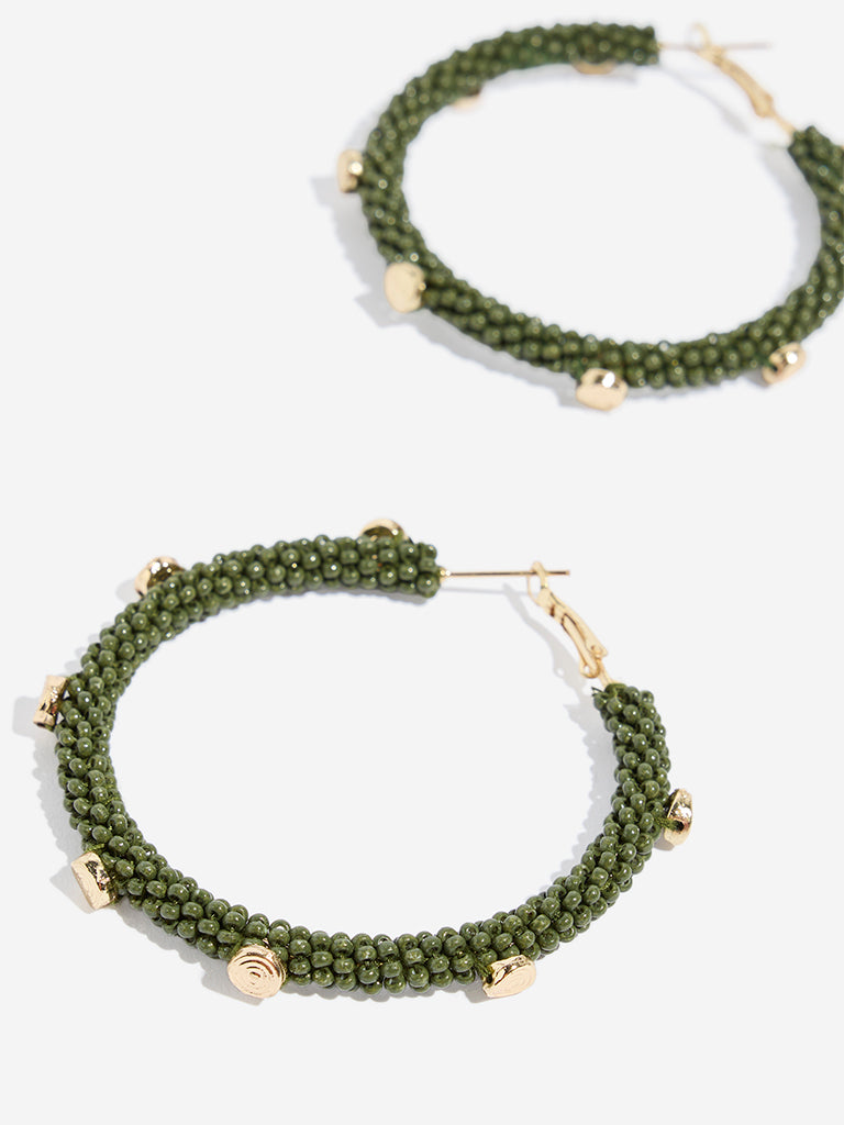 Westside Accessories Gold & Green Beaded Hoop Earrings