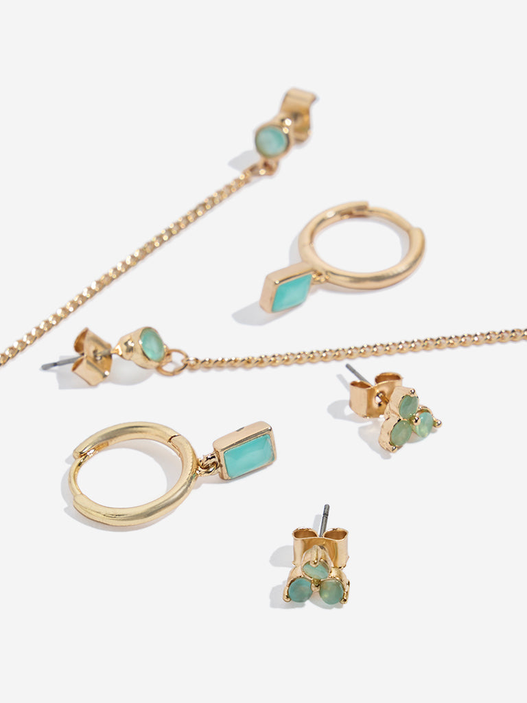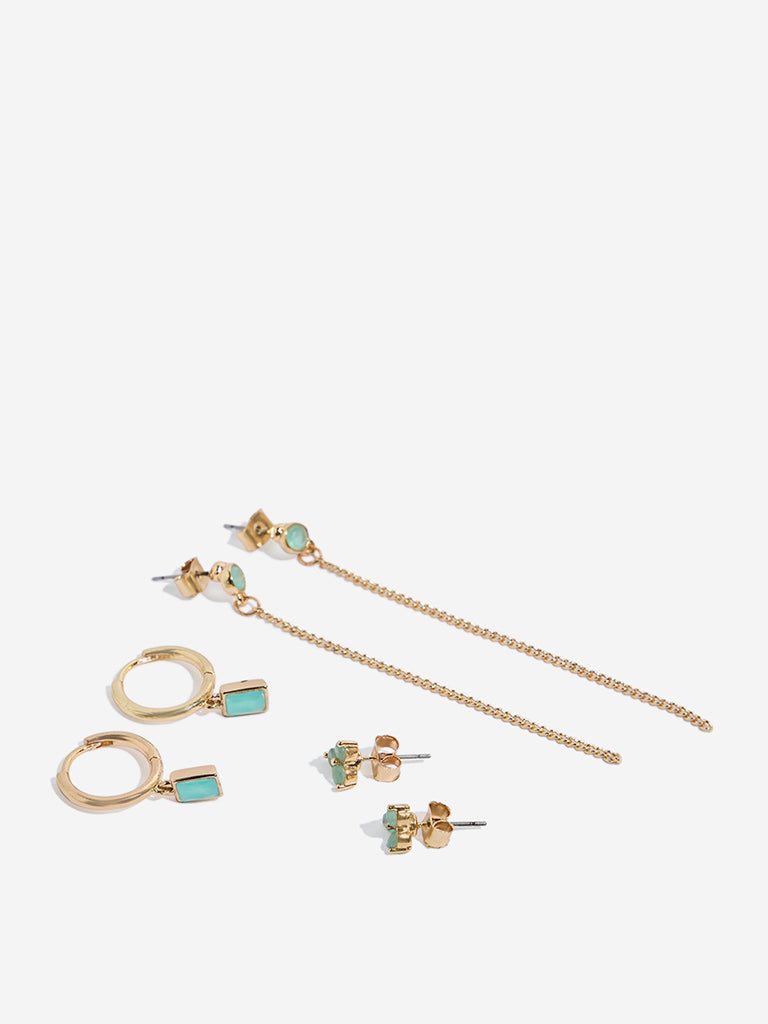 Westside Accessories Gold & Green Stud & Hoops Earrings Set – Pack of 3