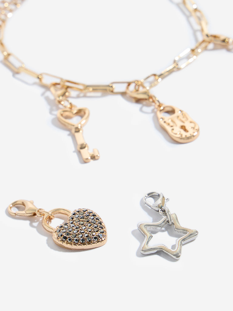 Westside Accessories Gold Multi Charm Bracelet Set – Pack of 2