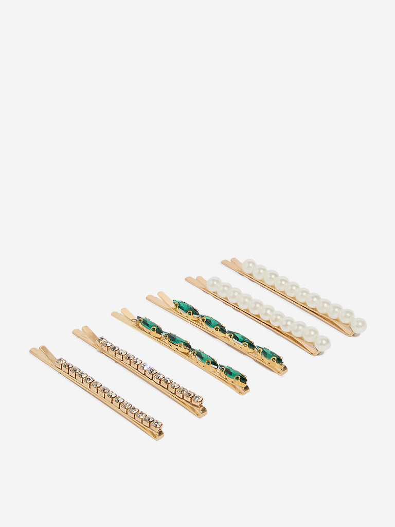 Westside Accessories Gold Pearl & Stone Embellished Hair Clips – Pack of 6