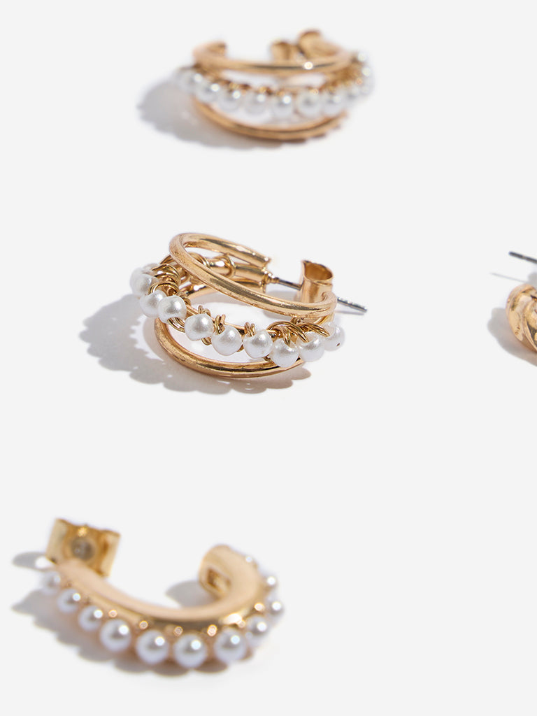 Westside Accessories Gold Pearlescent Hoop Earrings – Pack of 3