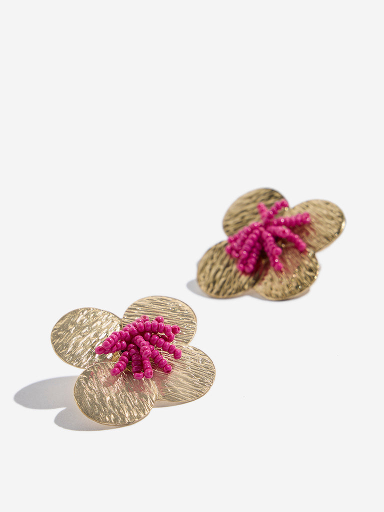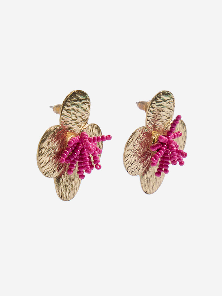 Westside Accessories Gold & Pink Textured and Beaded Stud Earrings