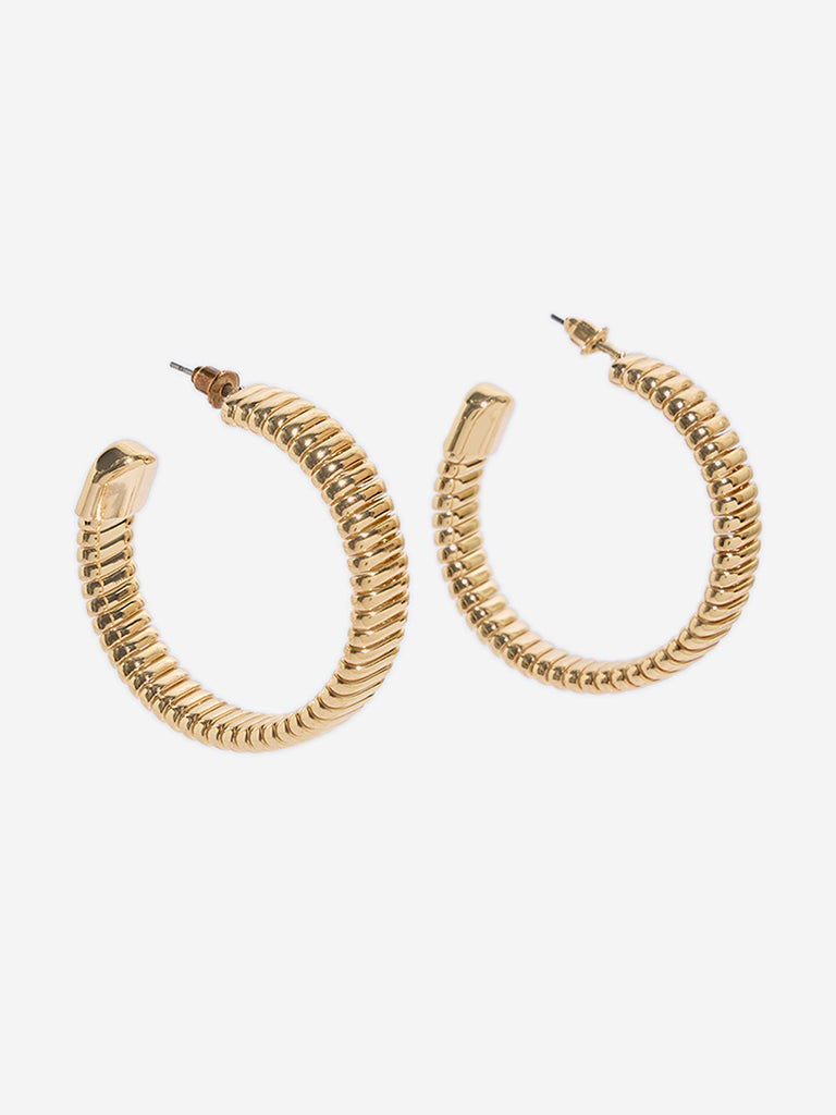 Westside Accessories presents these Gold Statement Hoops. crafted with a textured design for a modern twist on a classic style. Secured with post closures. these hoops effortlessly elevate both casual and dressy looks.