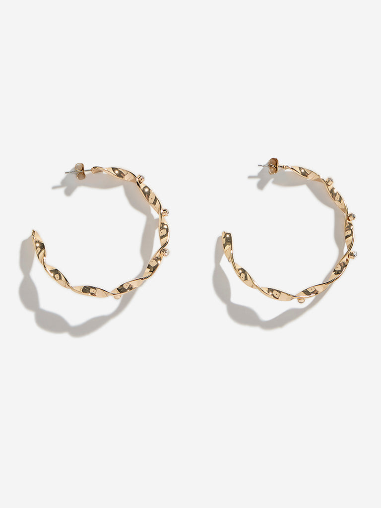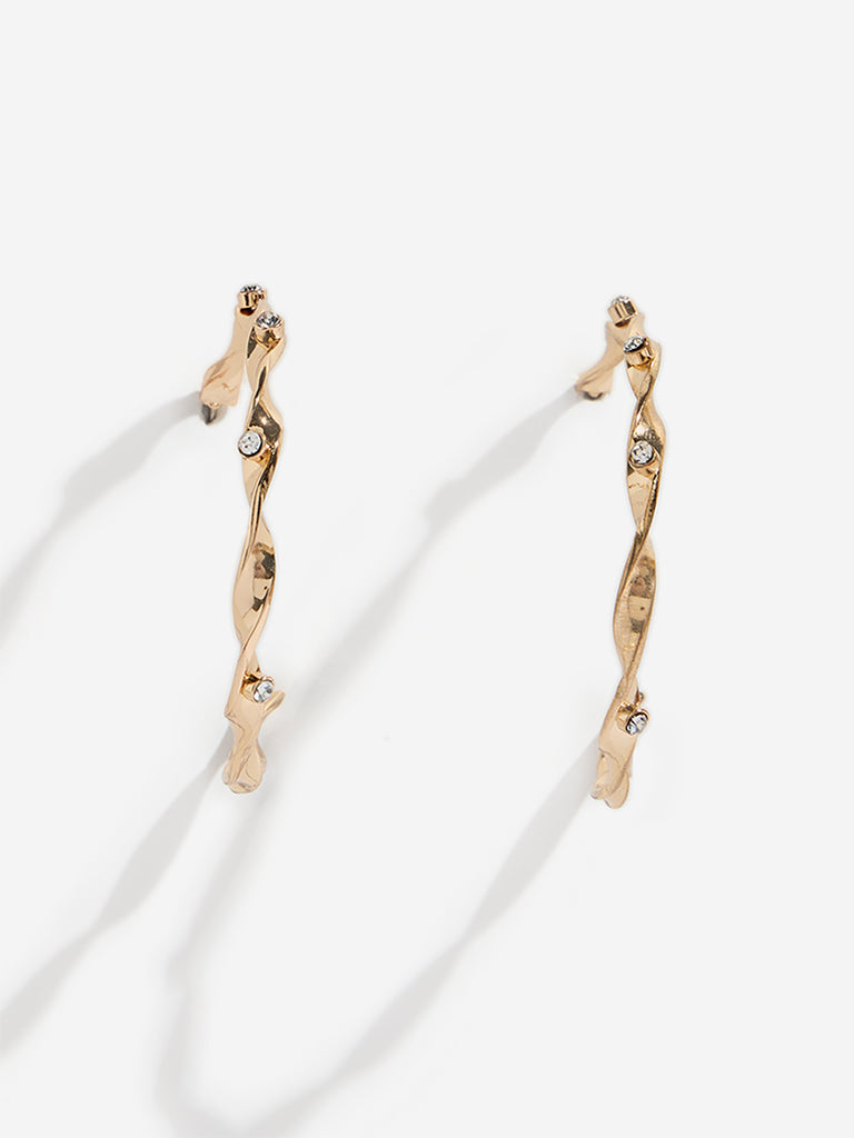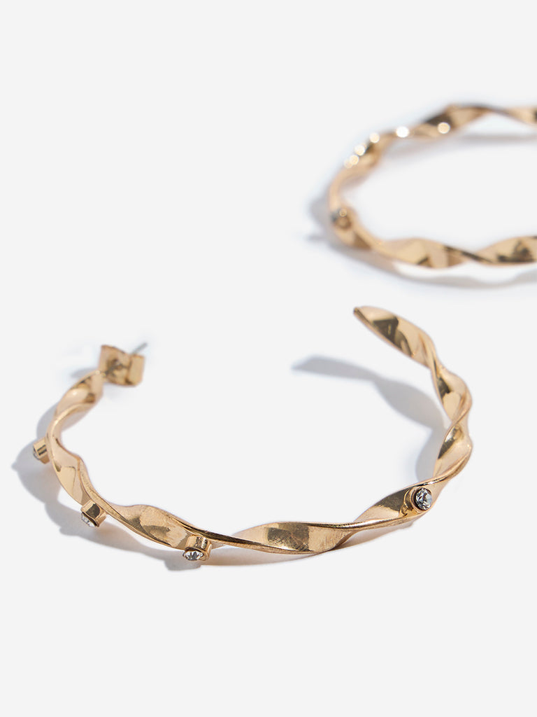 Westside Accessories presents these gold hoop earrings. designed with a chic twisted structure for added dimension. Accentuated with clear gemstone-studded detailing. this pair brings a touch of sparkle to your everyday or occasion looks.