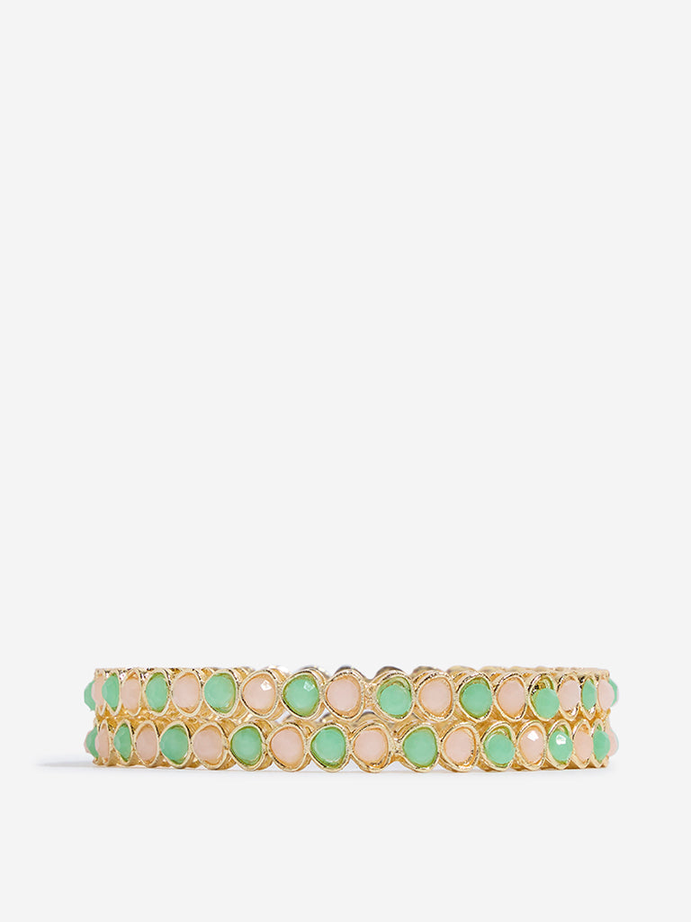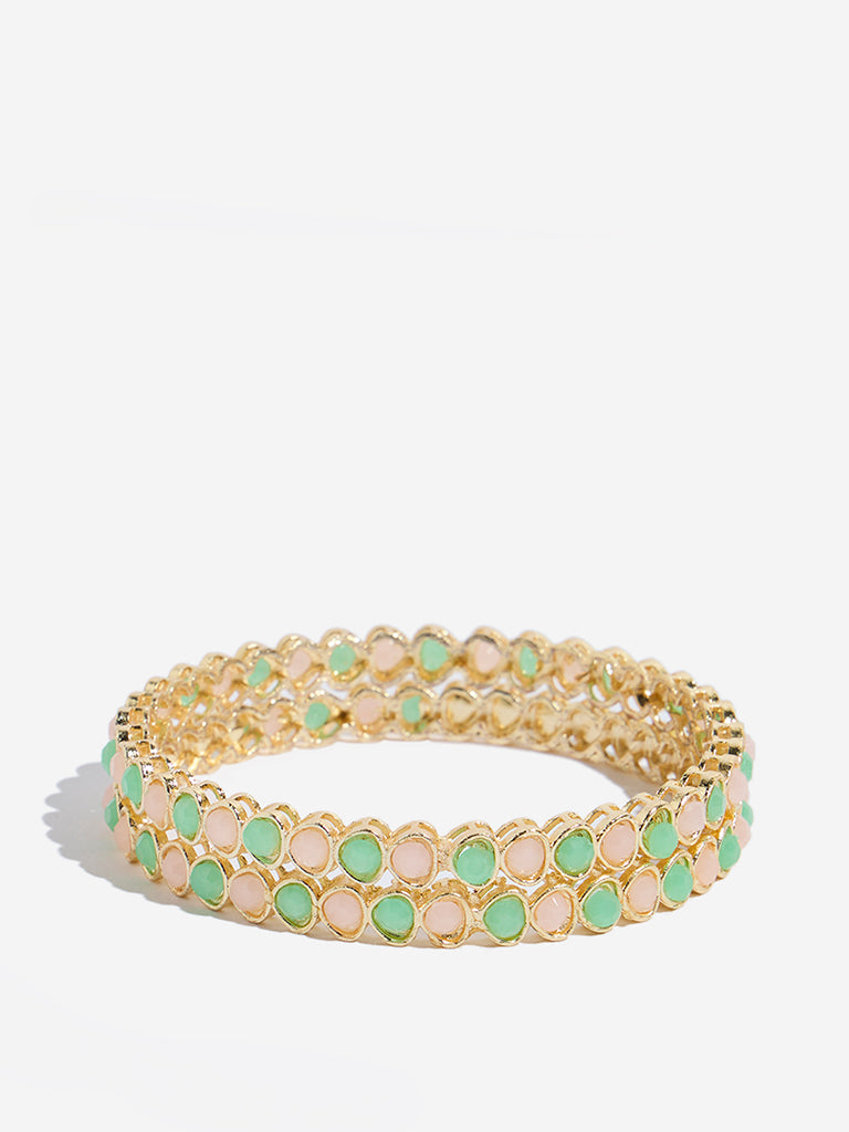 Be the first to review “Westside Accessories Green & Blush Pink Bangle Set” Cancel reply