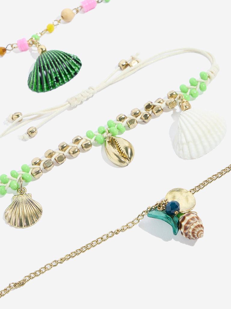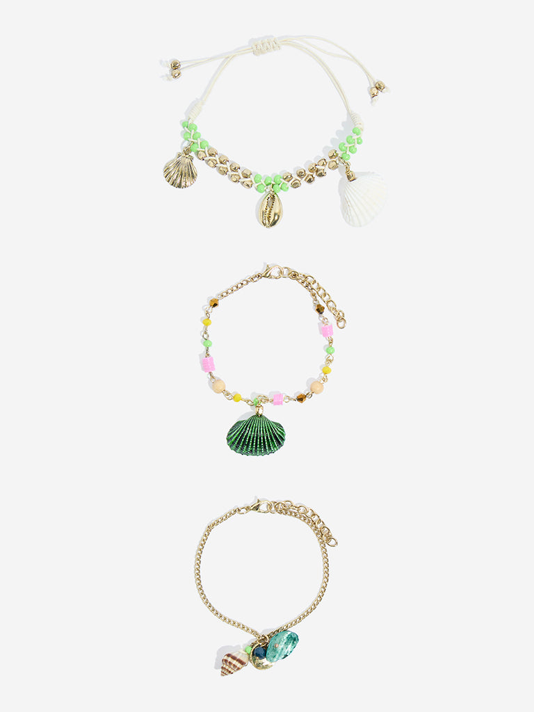 This charming pack of three multicolour bracelet set from Westside Accessories brings a bohemian. beach-inspired vibe to any outfit. Each bracelet features genuine sea shells. often small cowrie shells. intricately woven with vibrant beads and colourful threads. Designed for comfortable wear. they come with adjustable ties or elasticated fits. making them perfect for stacking or wearing alone.