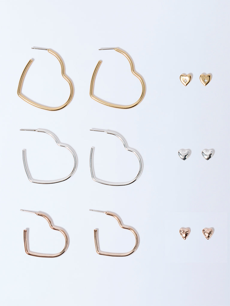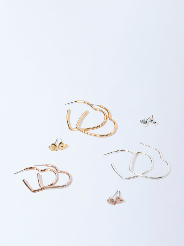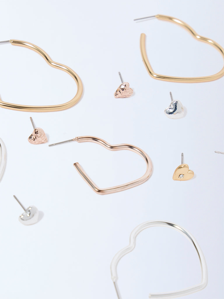 Westside Accessories Multicolour Heart Stud and Hoop Earrings Set – Pack of 6