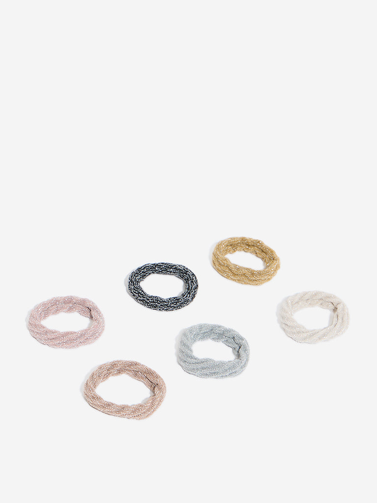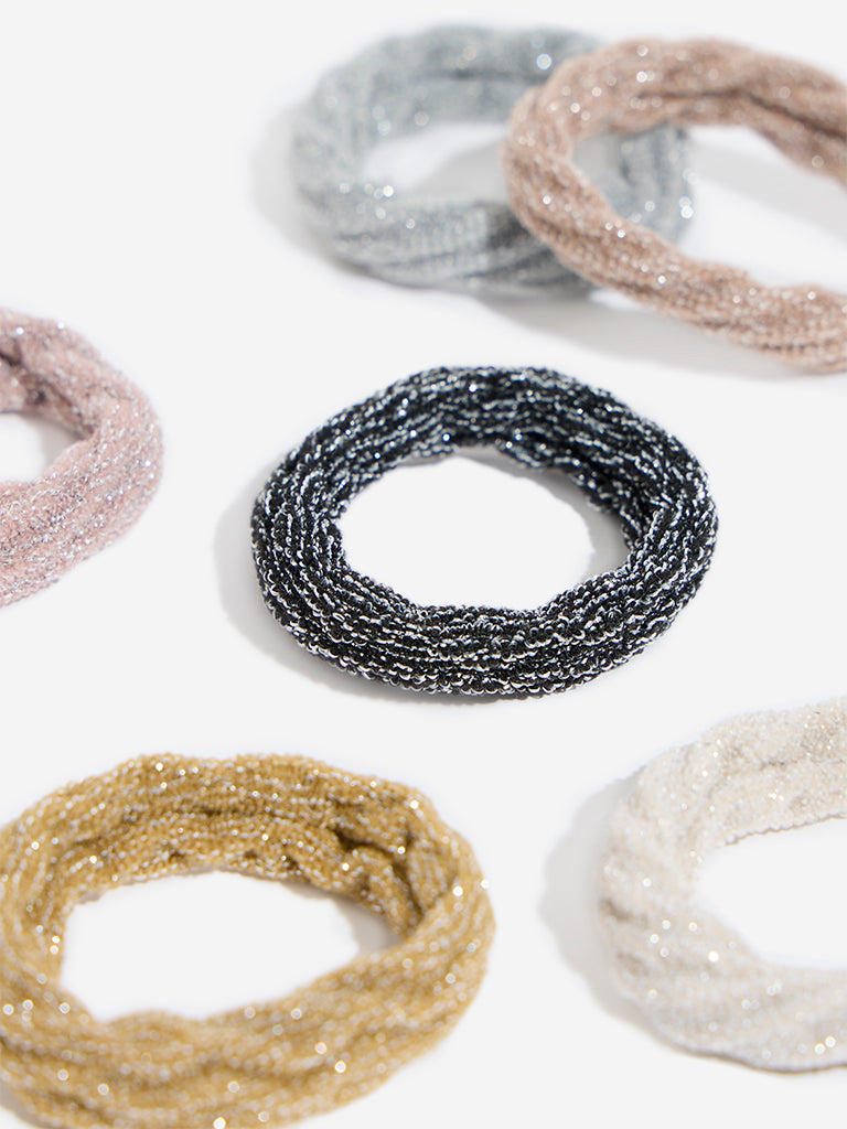 Westside Accessories Multicolour Ribbed Glitter Design Scrunchies – Pack of 6