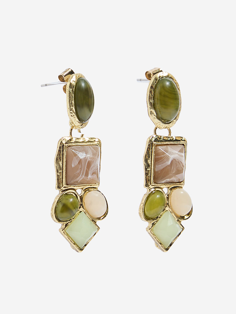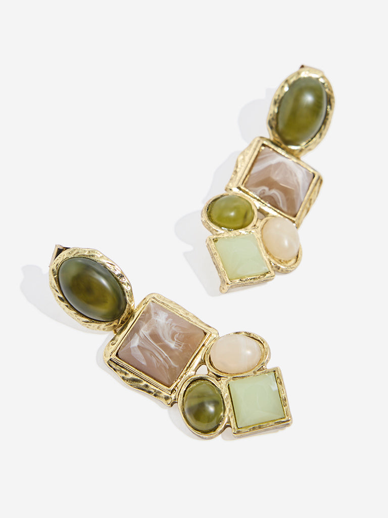 Quiet luxury takes shape in these drop earrings from Westside Accessories. Featuring multi-shaped stones in earthy tones set in sleek gold-toned frames. they bring a refined edge to your daily style. Their graceful silhouette works across your wardrobe—from linen shirts to silk sarees—making them an easy pick for day or night elegance without the fuss.