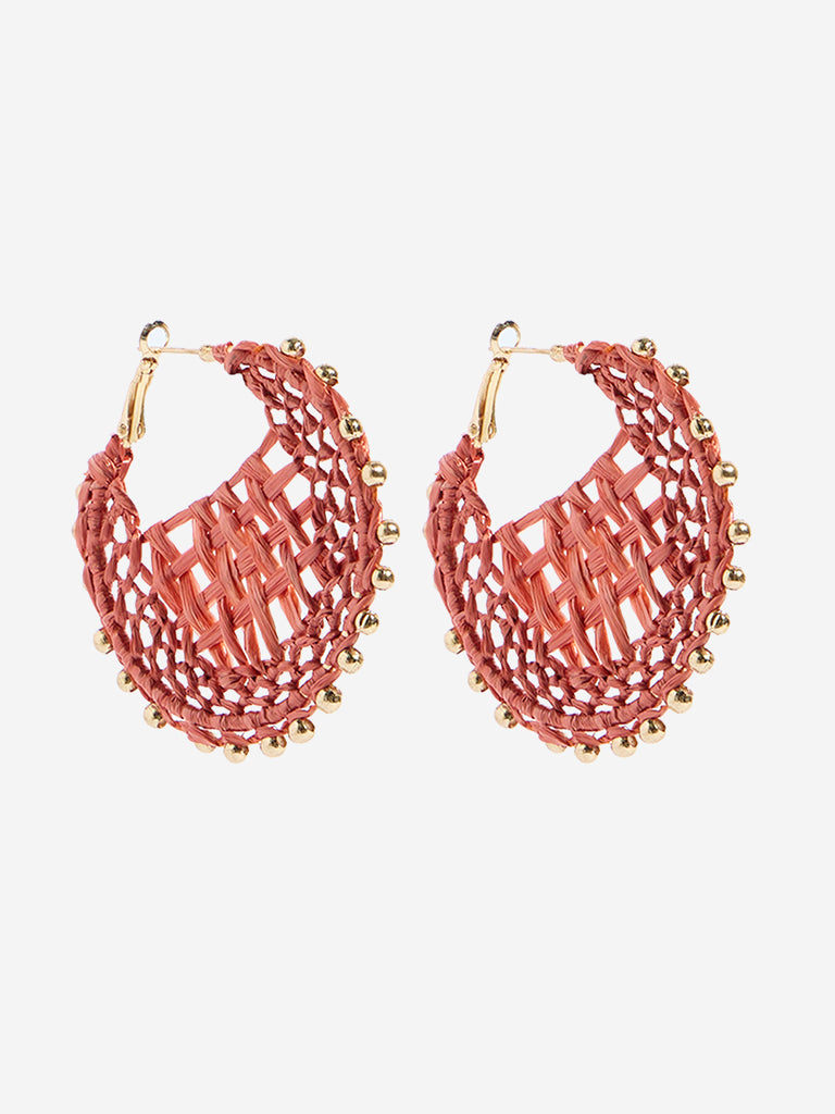 Westside Accessories presents these handcrafted orange earrings. featuring an intricate woven raffia design in a hoop-like circular silhouette. Accented with delicate bead-like edges. they blend bohemian charm with contemporary flair. Lightweight and comfortable to wear. they make a striking addition to both everyday and festive looks.