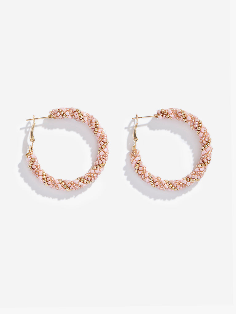 Westside Accessories Pink & Gold Twisted Bead Hoop Earrings