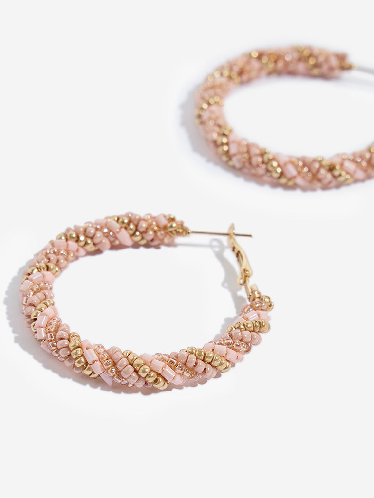 Be the first to review “Westside Accessories Pink & Gold Twisted Bead Hoop Earrings” Cancel reply