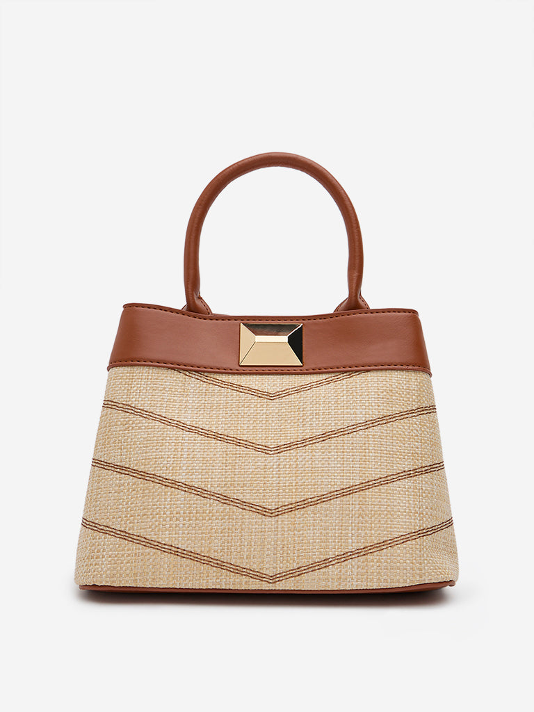 Be the first to review “Westside Beige & Brown Jute-Textured Hand Bag” Cancel reply