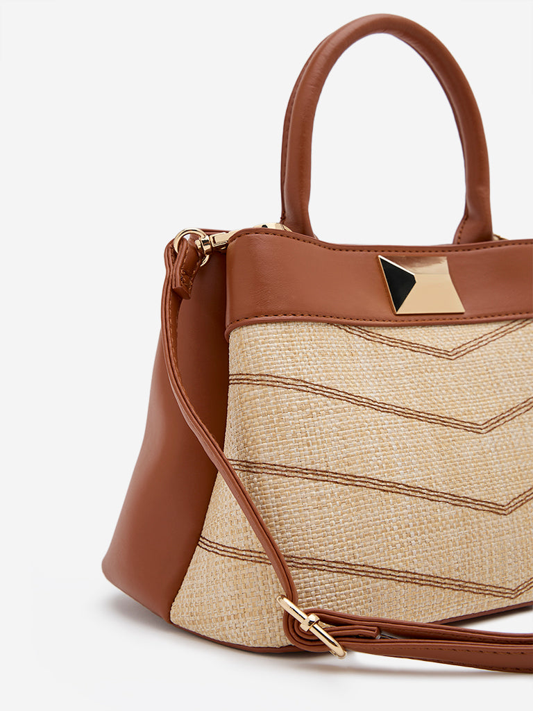 Stay effortlessly stylish with this beige and brown hand bag from by Westside. Designed with a durable build. it features a compact silhouette perfect for on-the-go convenience. The bag offers an adjustable and detachable strap for versatility and comfort. making it a chic everyday accessory.