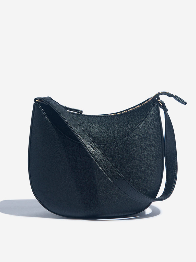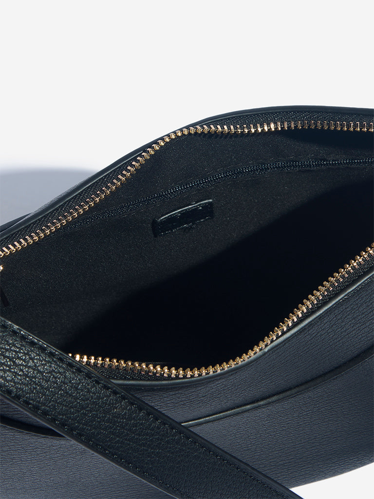 Westside presents this chic shoulder bag crafted in smooth black faux leather. Designed with a sleek. minimalist aesthetic. it complements a variety of everyday looks. The comfortable shoulder strap ensures effortless. hands-free carrying. while the secure zip-top closure opens to a spacious interior.
