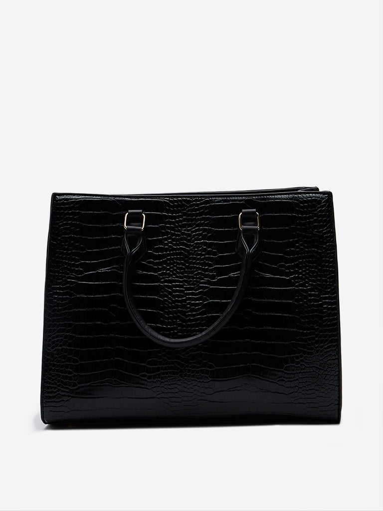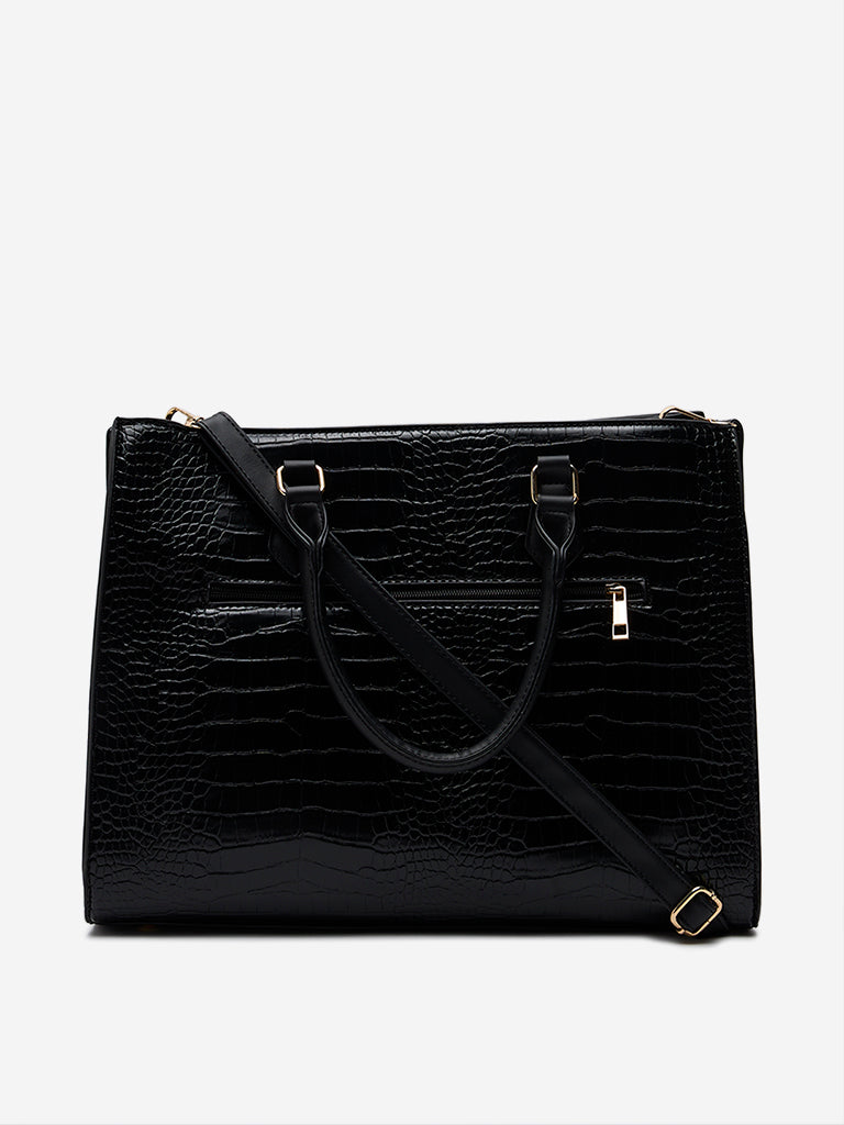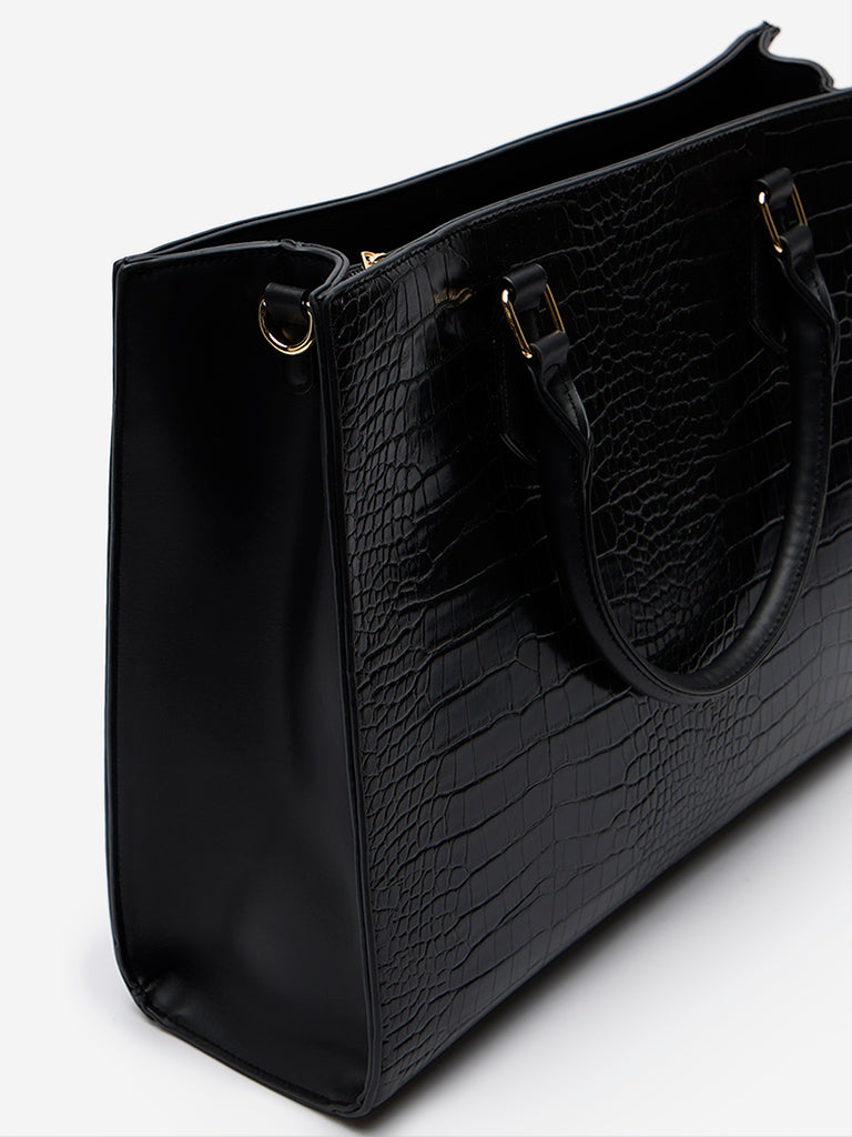 Westside brings you this black shoulder bag featuring both style and functionality. Crafted in a generous size. it boasts striking texture design in its exterior. The bag’s chic semi-circular handle and a sturdy shoulder strap vouch for a versatile carrying options. With a spacious main zippered compartment and several internal and external pockets. it keeps your essentials organized while adding a touch of elegance to any outfit.