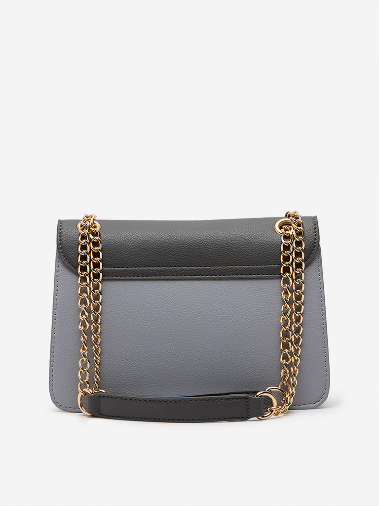 Make a stylish statement with Westside blue sling bag displaying a secure overflap with a gold-toned locker. The spacious zippered single compartment keeps your essentials safe. while the chic chain-stacked handles add a trendy touch.