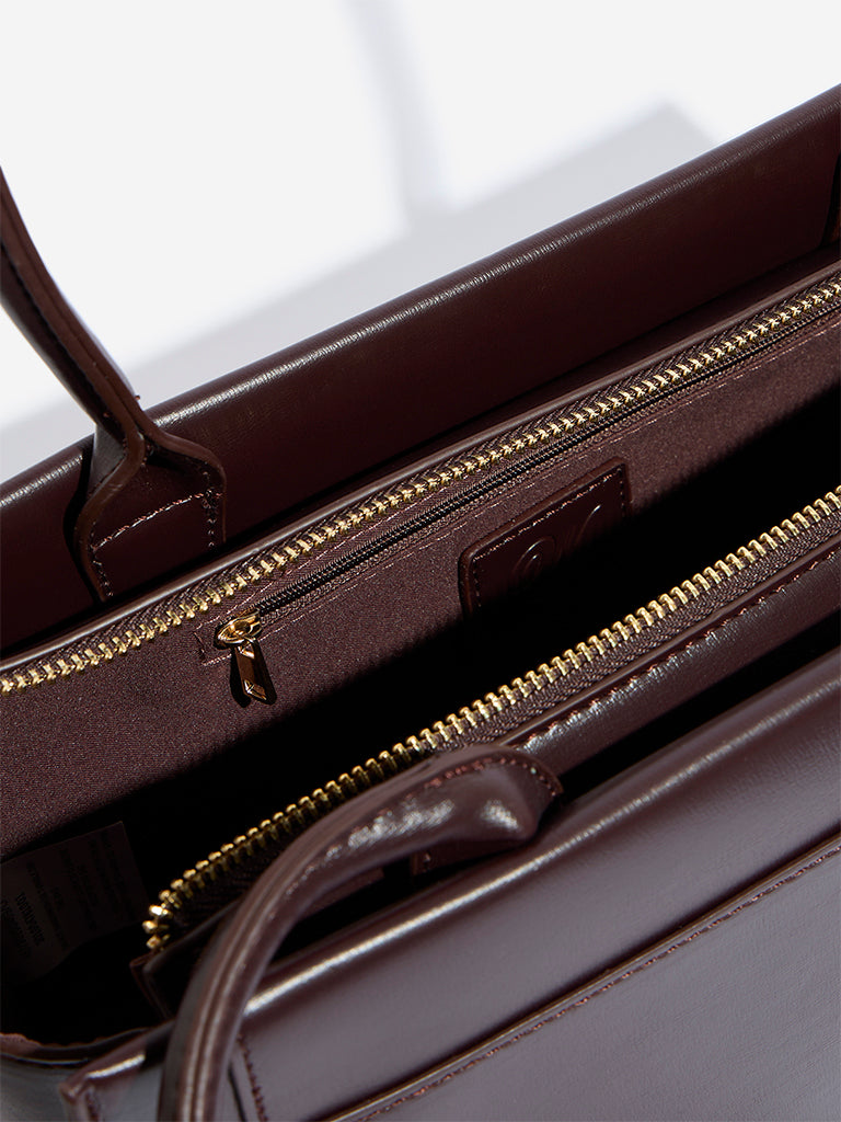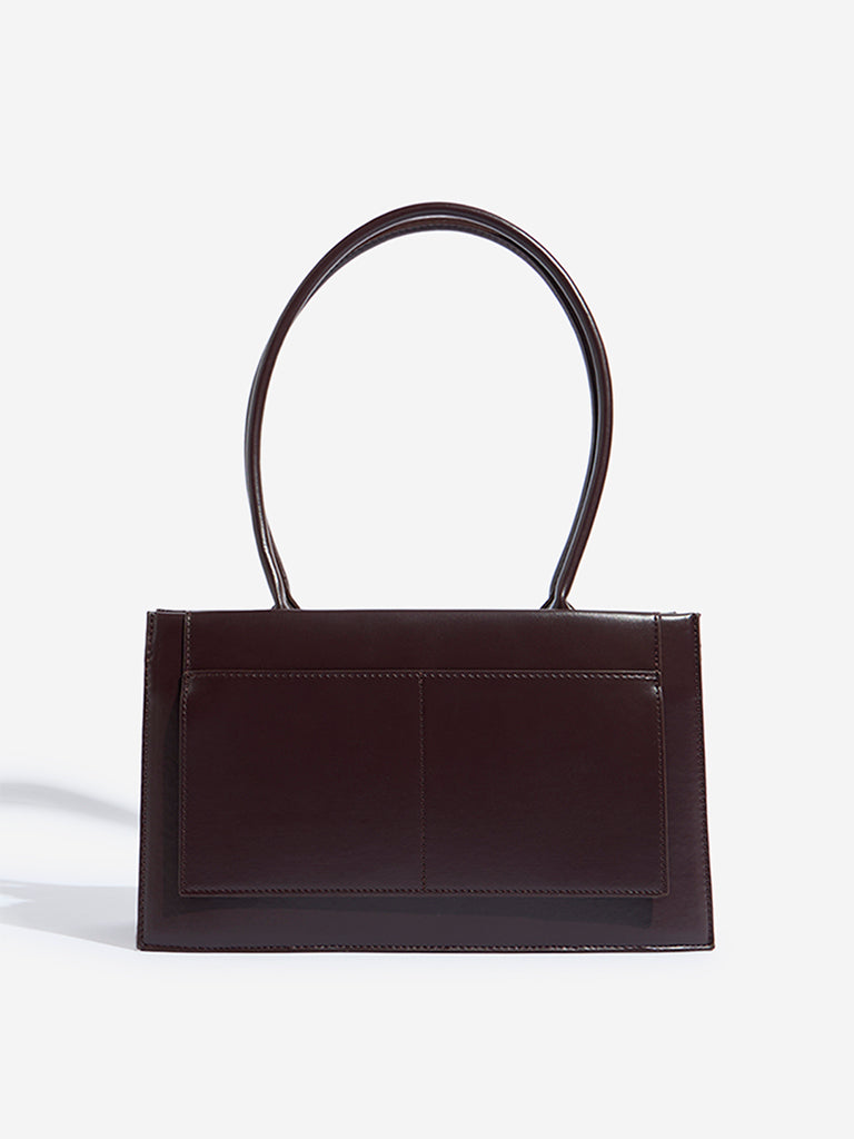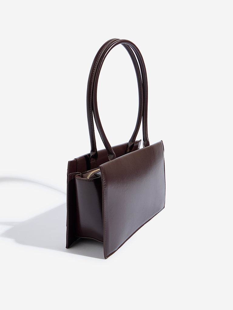 Westside presents this brown shoulder bag. crafted from faux leather for a refined touch. Designed with a spacious interior. it features a main compartment. multiple zippered sections. and sturdy shoulder straps for effortless carrying. A versatile pick for everyday elegance.