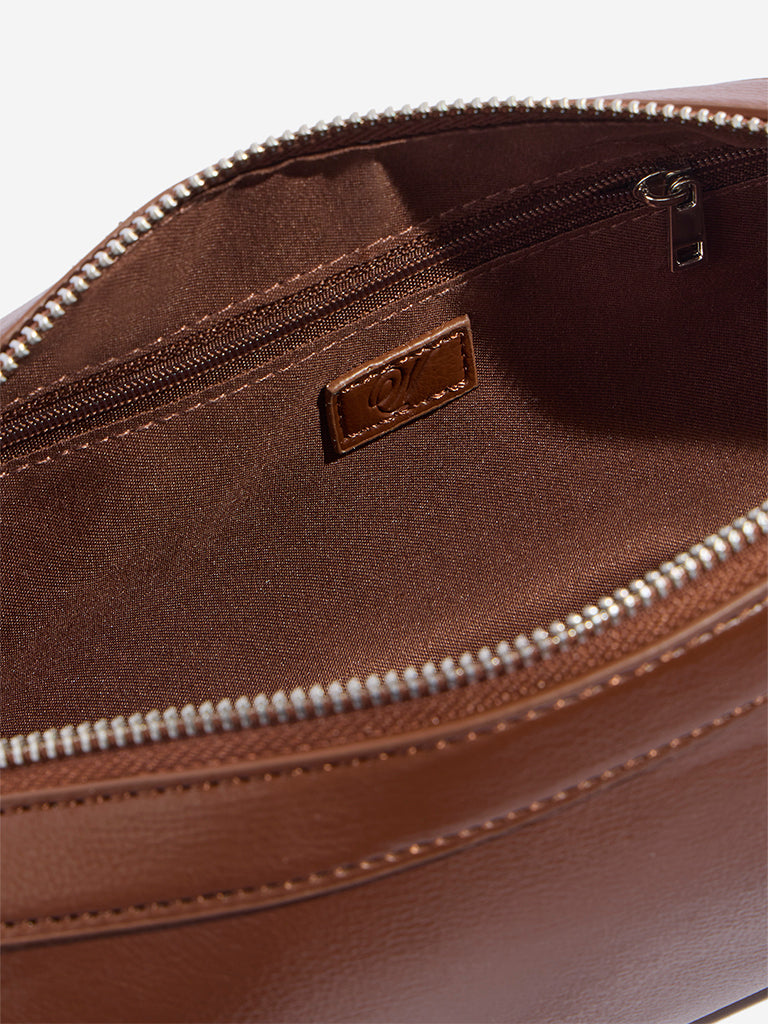 Westside brings you this minimalist brown shoulder bag. designed for everyday ease and style. It showcases a clean. rectangular shape with a secure zip closure. The spacious interior includes zip pockets for added functionality. while the matching adjustable strap allows for comfortable carry. Its warm brown tone makes it a timeless and versatile choice.