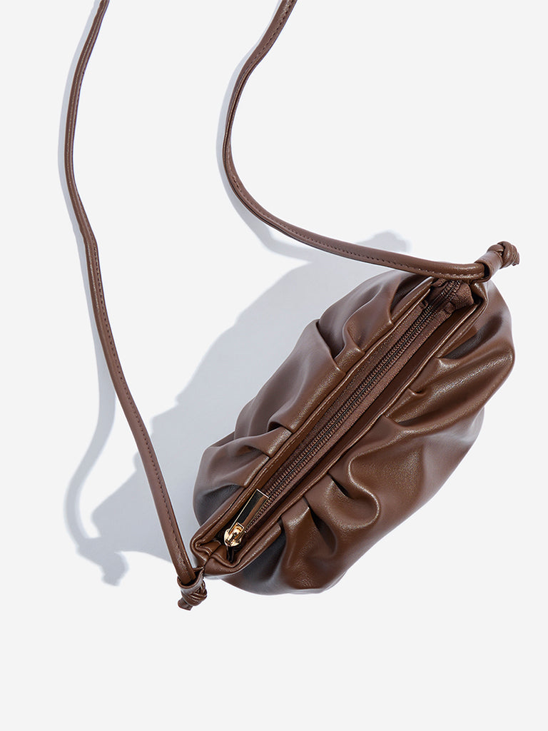 This dark brown sling bag from Westside brings together timeless style and everyday practicality. Crafted from smooth faux leather. it features a clean. structured silhouette with minimal detailing for a polished look. The zip-top closure secures your essentials. while the adjustable sling strap allows for hands-free ease. Whether you’re headed to work or weekend brunch. this versatile piece complements any outfit with effortless charm.