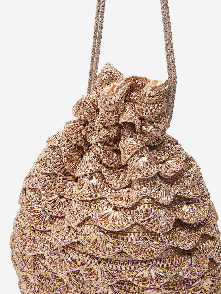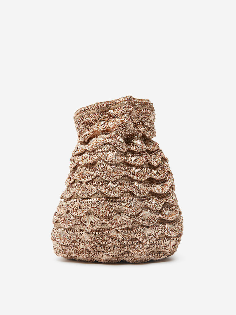Stylish and functional. this gold potli bag from Westside is a must-have. The chic accessory features an intricate crochet finish for added style. while the tasselled straps ensure a snug fit.