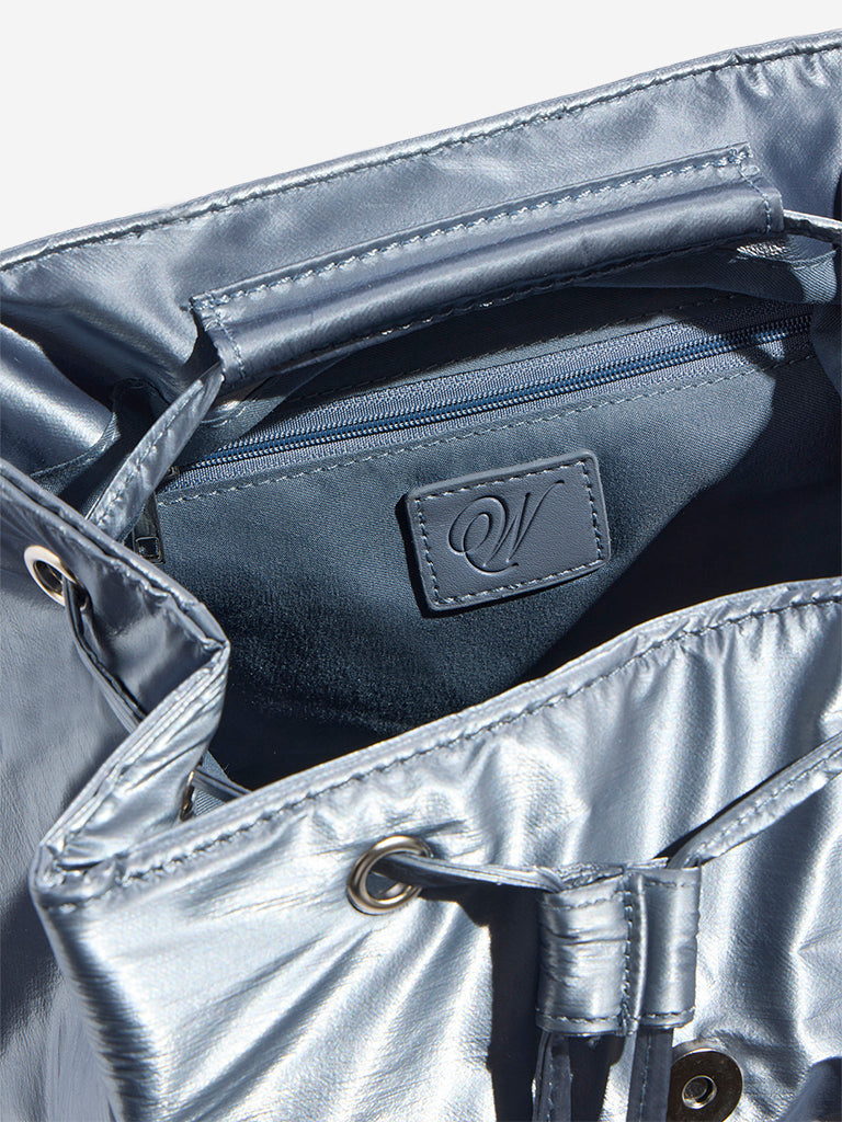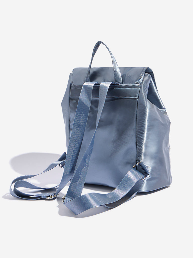 Westside presents this sleek grey backpack crafted from smooth. It features a flap-over design with a drawstring-secured main compartment. Inside. a zippered pocket offers secure storage for smaller items. The bag is finished with a top handle. adjustable shoulder straps. and two vertical front zip pockets for added functionality. Modern and versatile. this backpack is a practical choice for everyday use with a stylish edge.