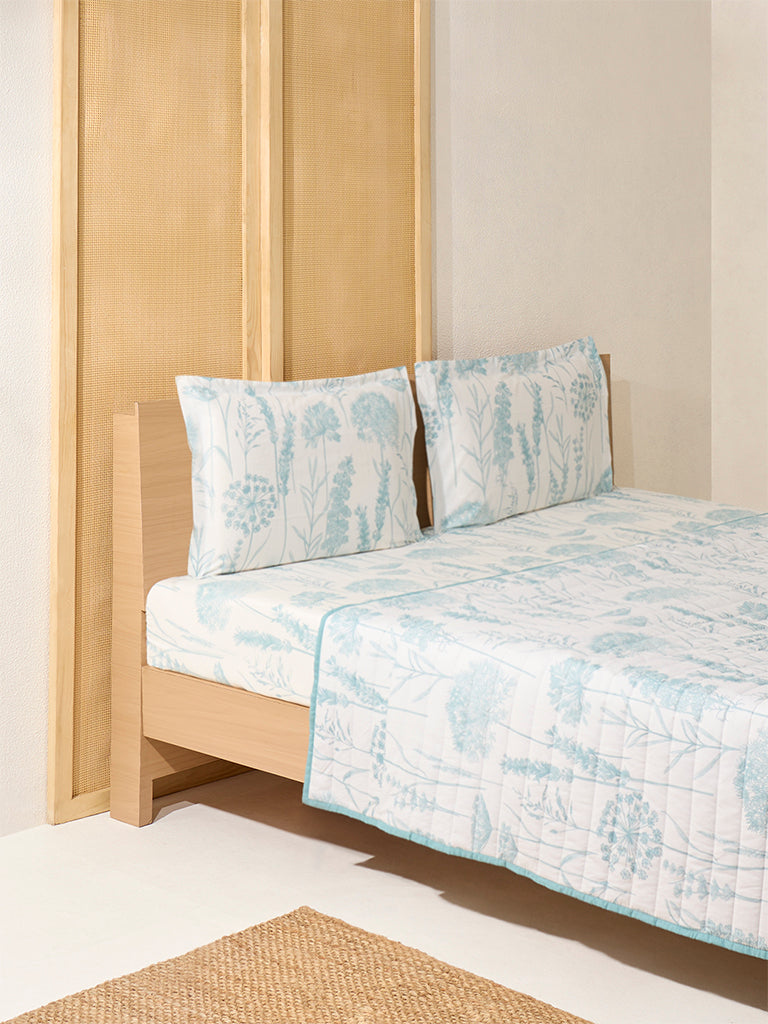 Infuse your bedroom with nature-inspired elegance with this reversible queen bed comforter from Westside Home. The vibrant aqua base. adorned with delicate botanical prints. adds a refreshing touch to your space. Flip it over to reveal a contrasting solid colour. offering two stylish looks in one. Soft and breathable. this comforter ensures a comfortable night’s sleep. while the botanical pattern brings a touch of tranquillity and life to your room. making it a perfect addition to your d??cor.