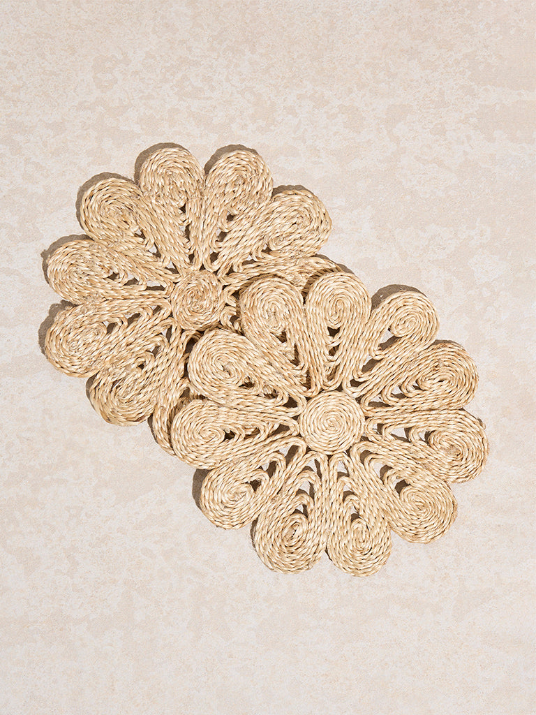 Westside Home Beige Daisy Braided Trivet (Set of 2)