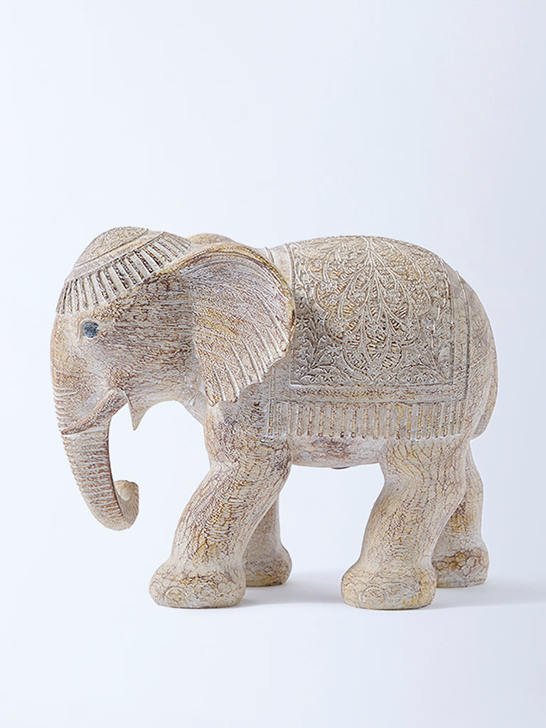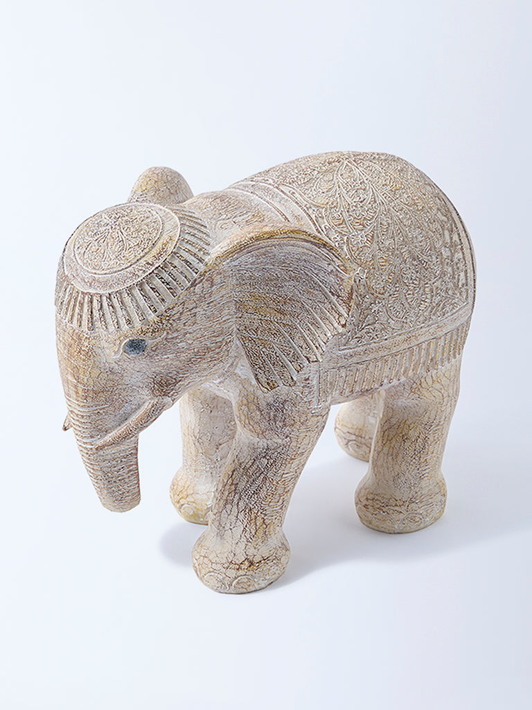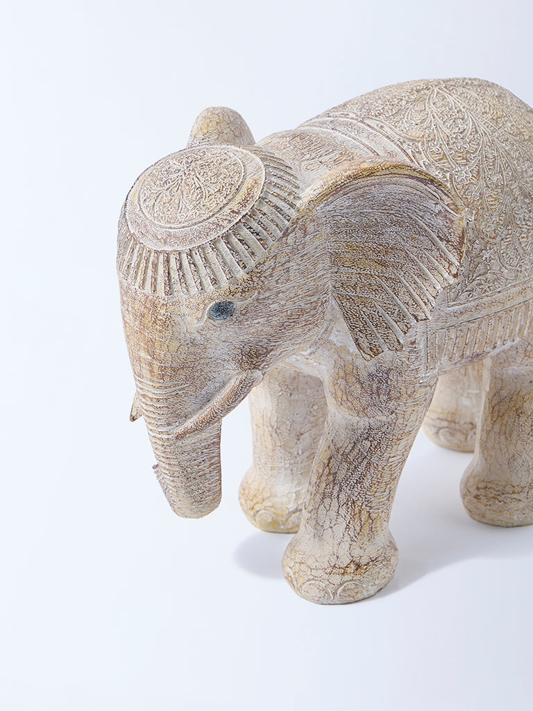 Graceful and symbolic. this large beige elephant from Westside Home lends warmth and character to your home. Crafted with fine detailing and a soft matte finish. it embodies strength. wisdom. and harmony. The neutral hue allows it to blend seamlessly into a variety of d??cor styles. from contemporary to traditional. Place it on a console or shelf as a meaningful accent that adds calm energy to your space.