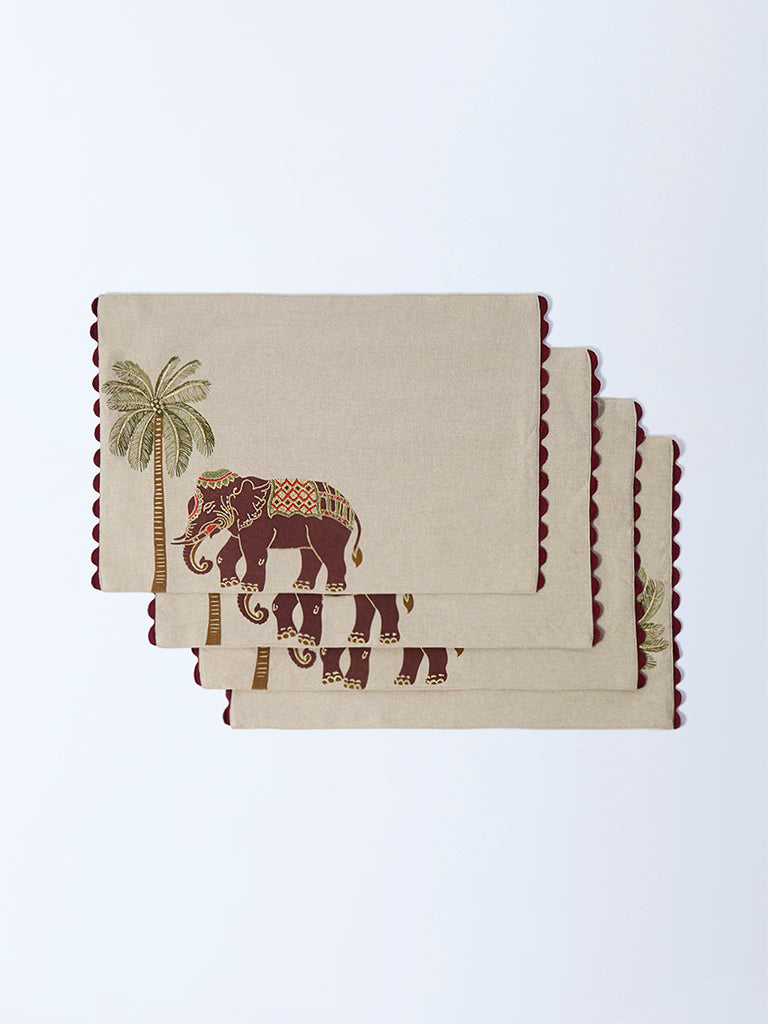 Westside Home Beige Elephant Design Placemats (Set of 4)