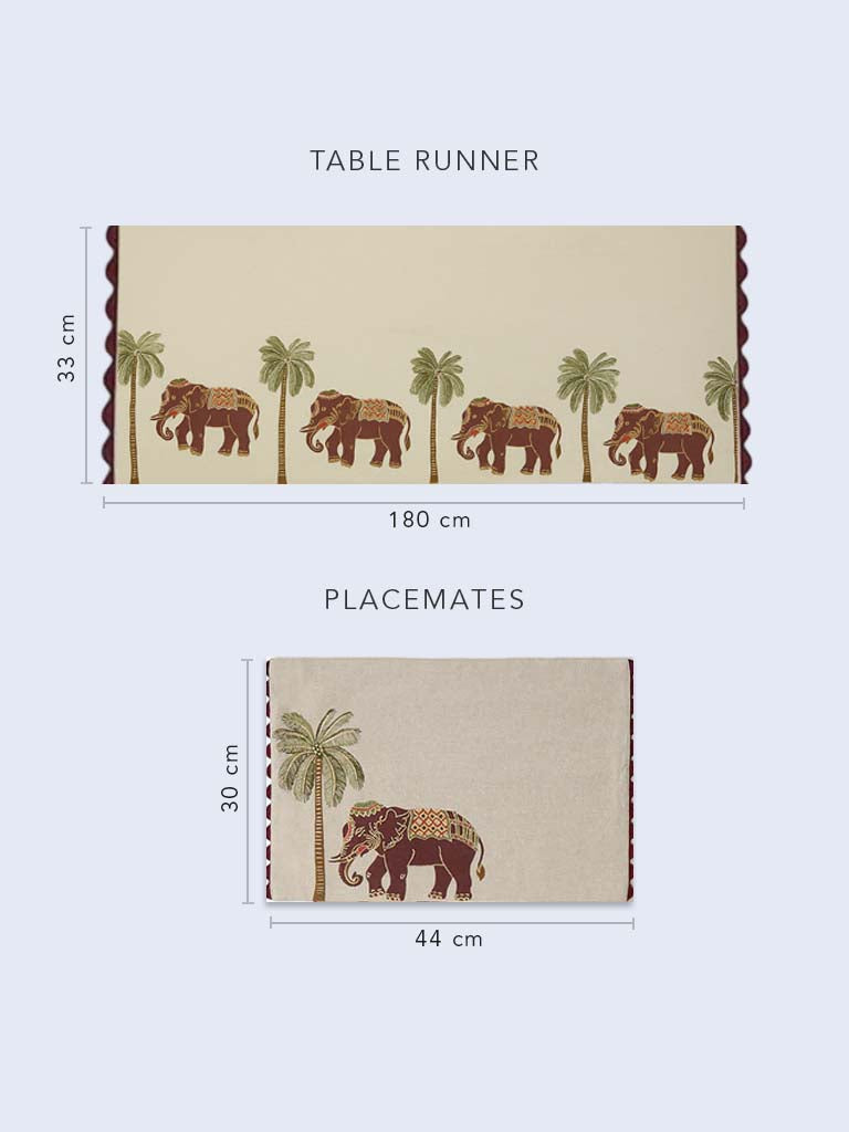 Bring playful charm to your dining table with this pack of four beige placemats from Westside Home. Detailed with whimsical elephant motifs. they add a characterful touch to both everyday meals and festive spreads. Crafted from durable material. these placemats protect your surfaces while enhancing the aesthetic of your setup. Their neutral base makes them easy to pair with patterned or solid dinnerware. creating a warm and inviting dining experience for family and guests alike.