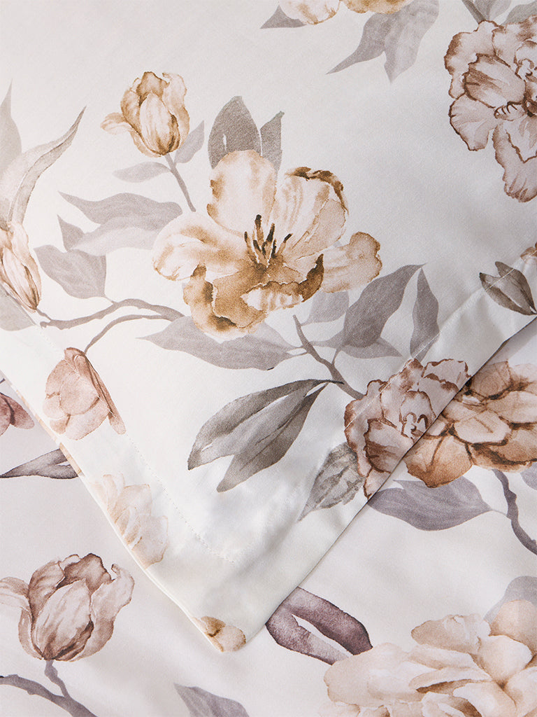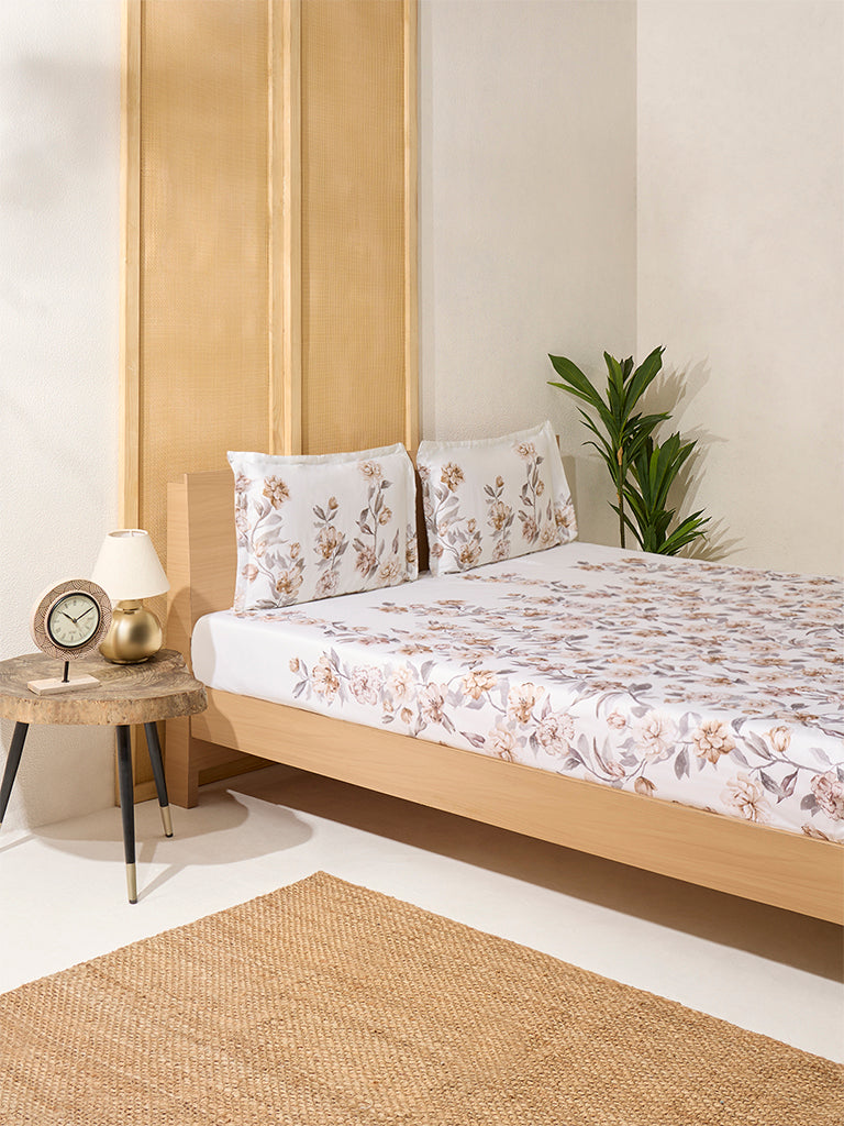 Westside Home Beige Floral Design Queen Bed Flat Sheet and Pillowcase Set