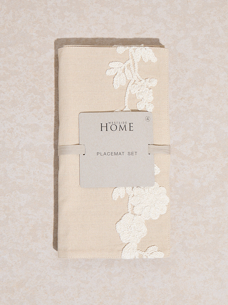 Westside Home Beige Floral Embroidered Placemats (Set of 4)