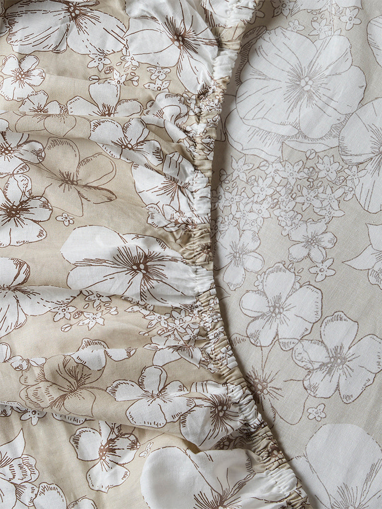 Westside Home Beige Floral Pattern King Bed Sheet Set