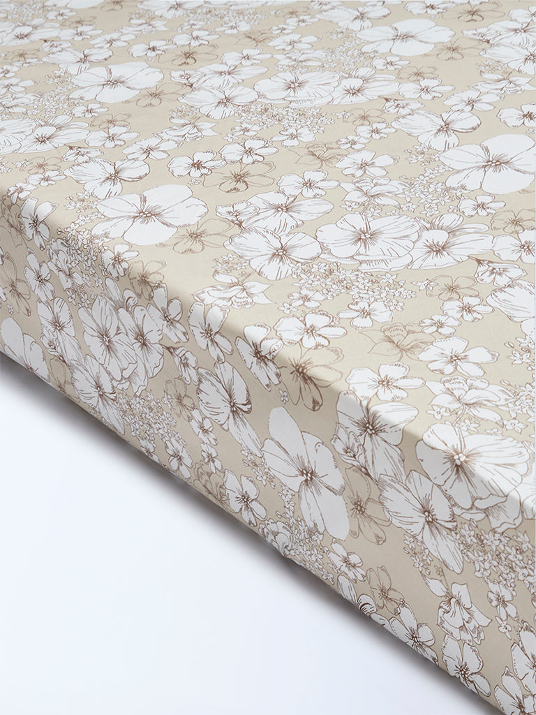 Westside Home Beige Floral Pattern Queen Bed Sheet Set