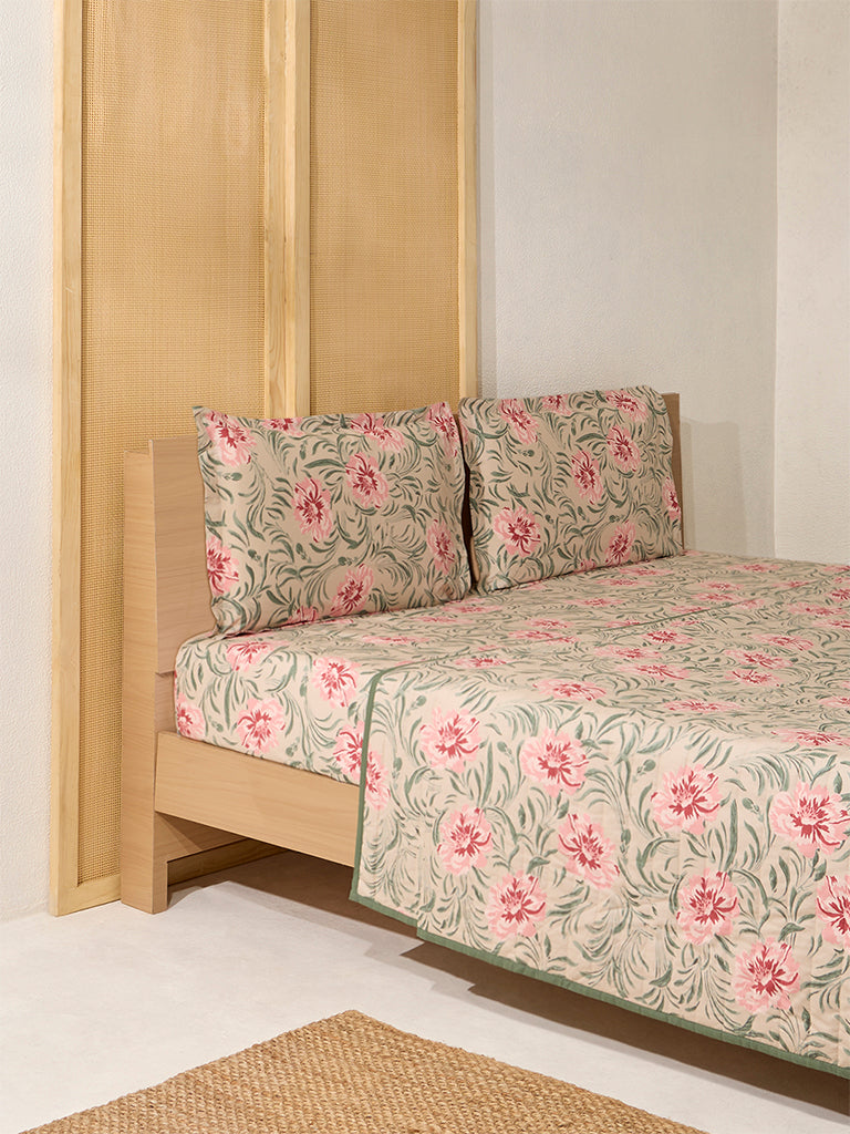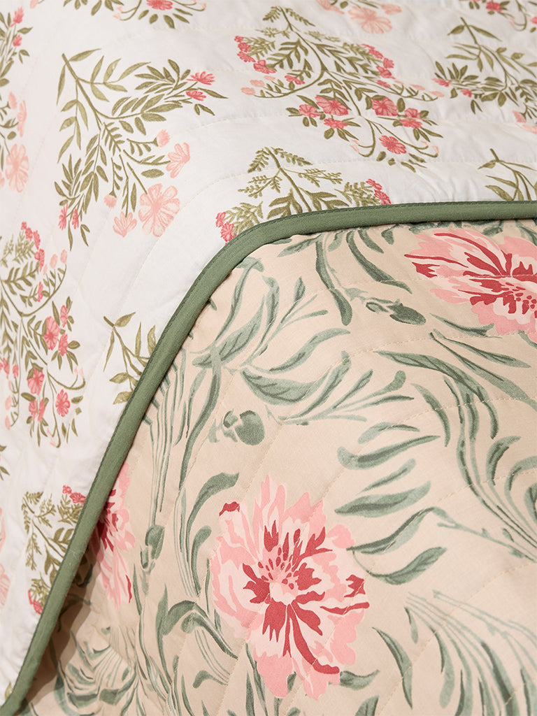 Westside Home Beige Floral Patterned Reversible Quilted Queen Bed Comforter