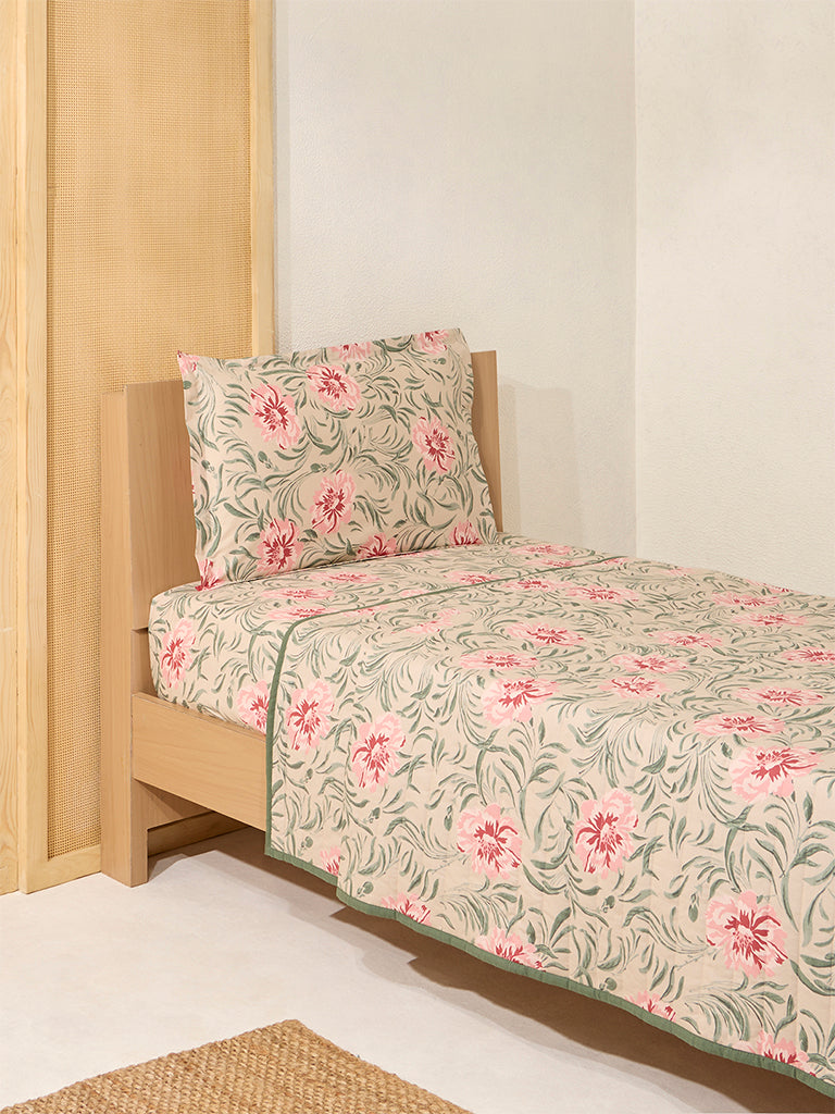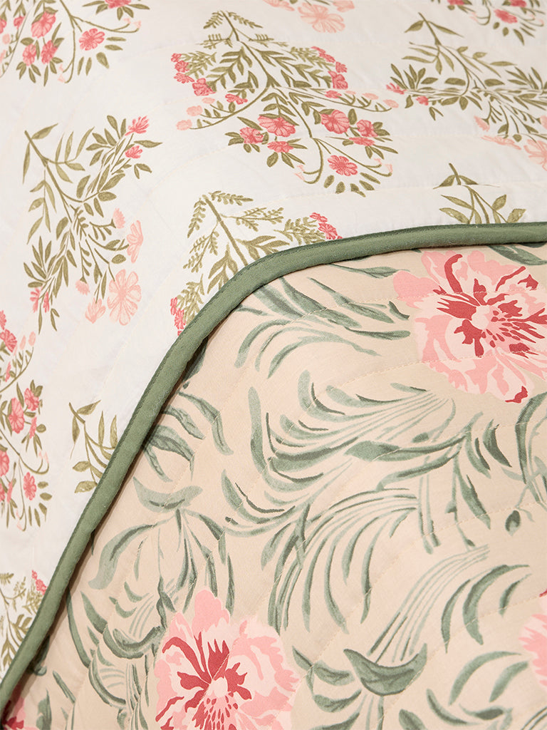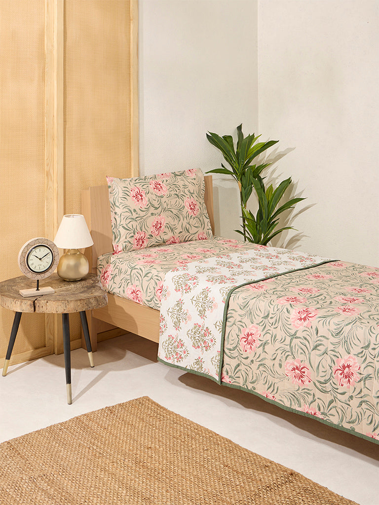 Westside Home Beige Floral Patterned Reversible Quilted Single Bed Comforter