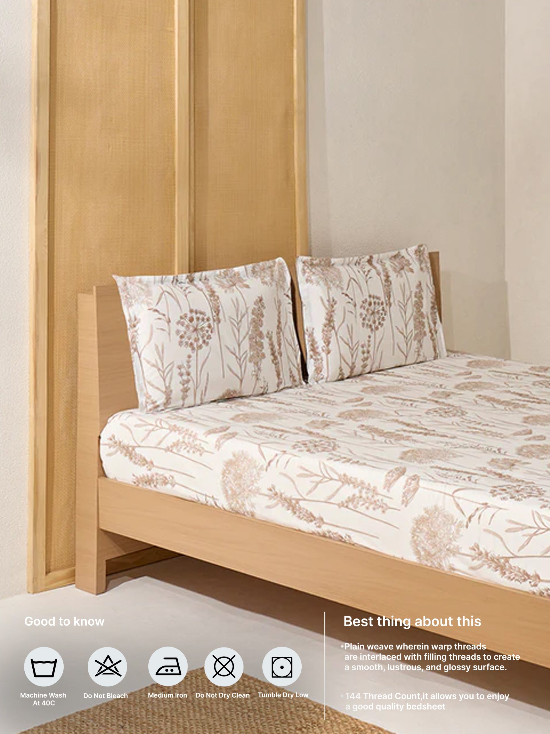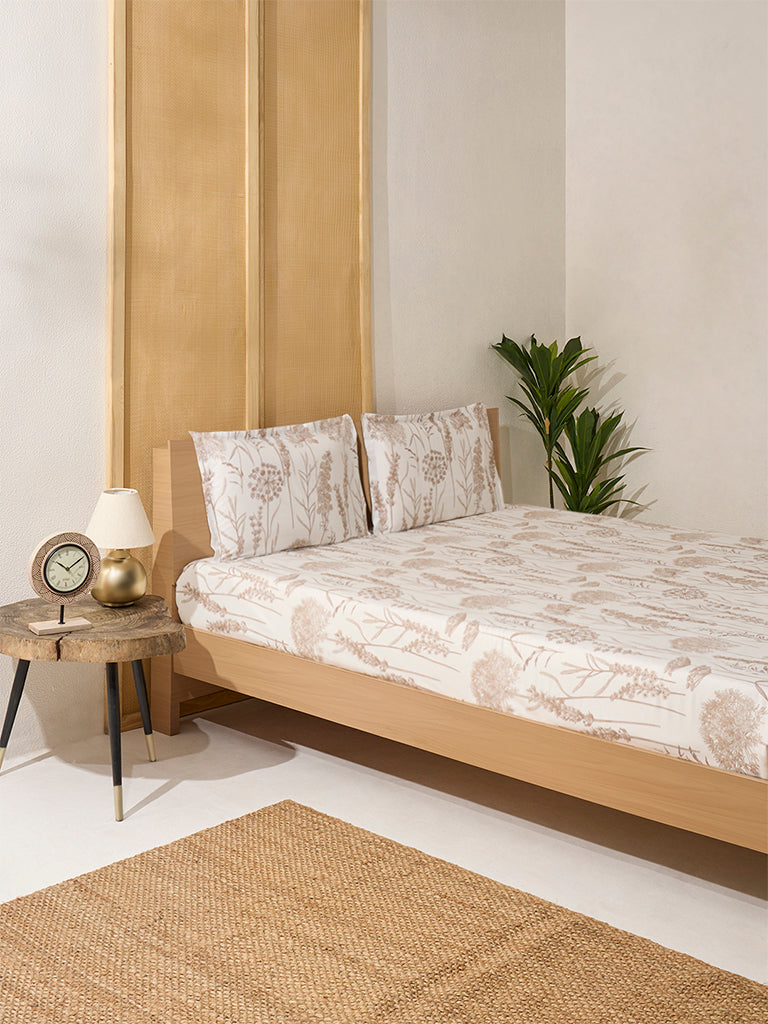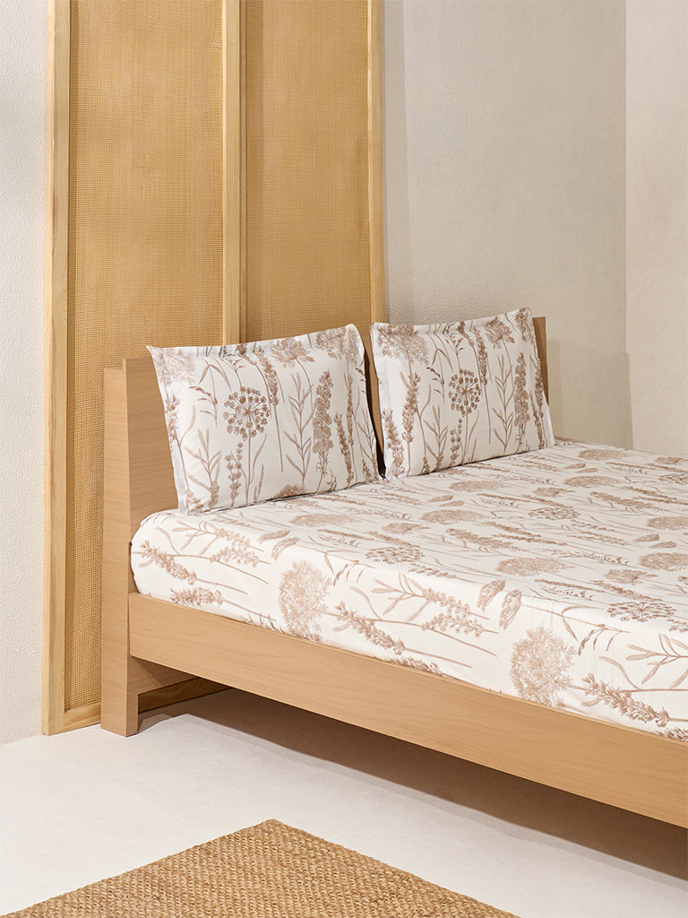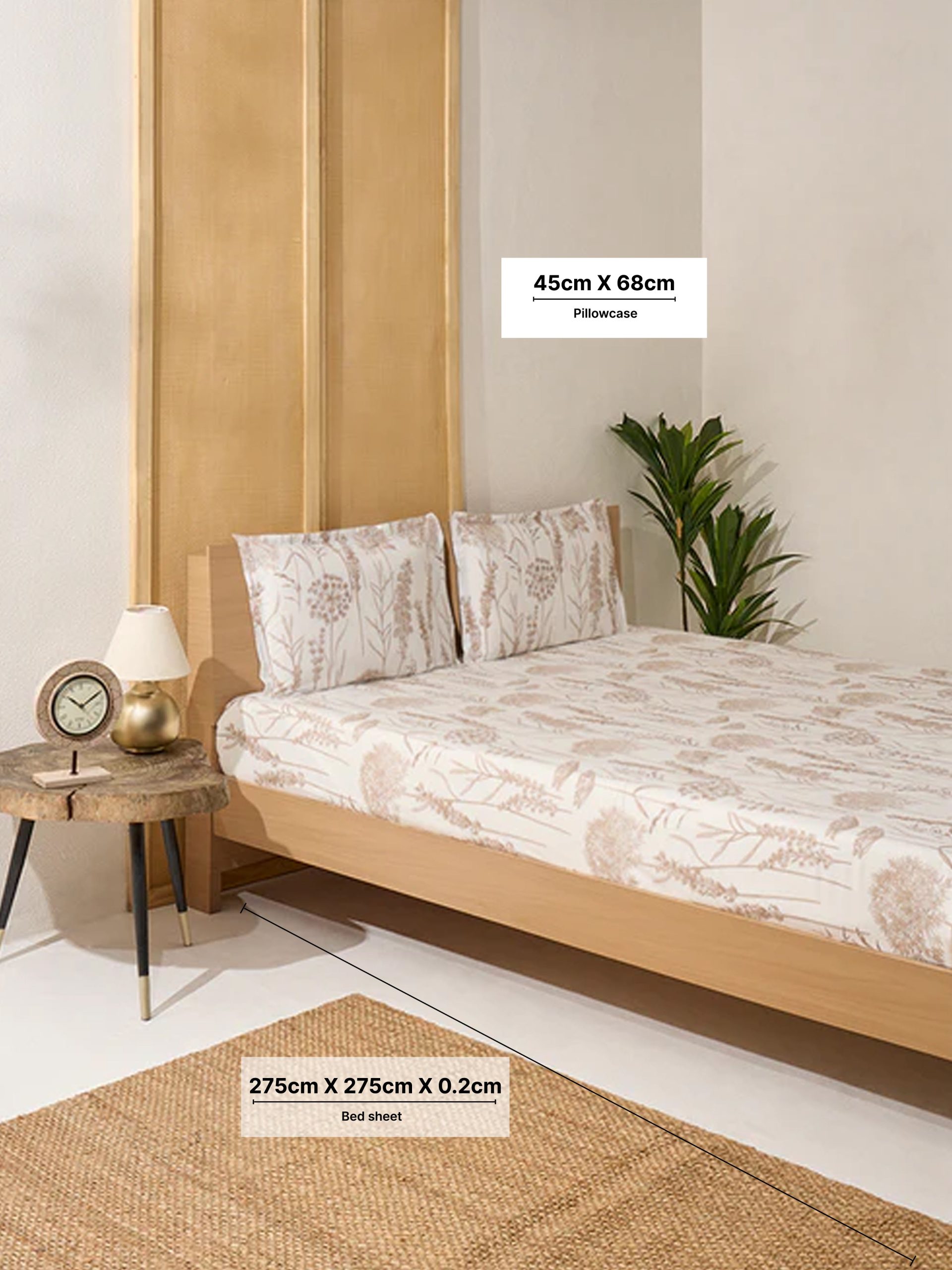 Westside Home Beige Floral Printed King Bed Flat Sheet and Pillowcase Set