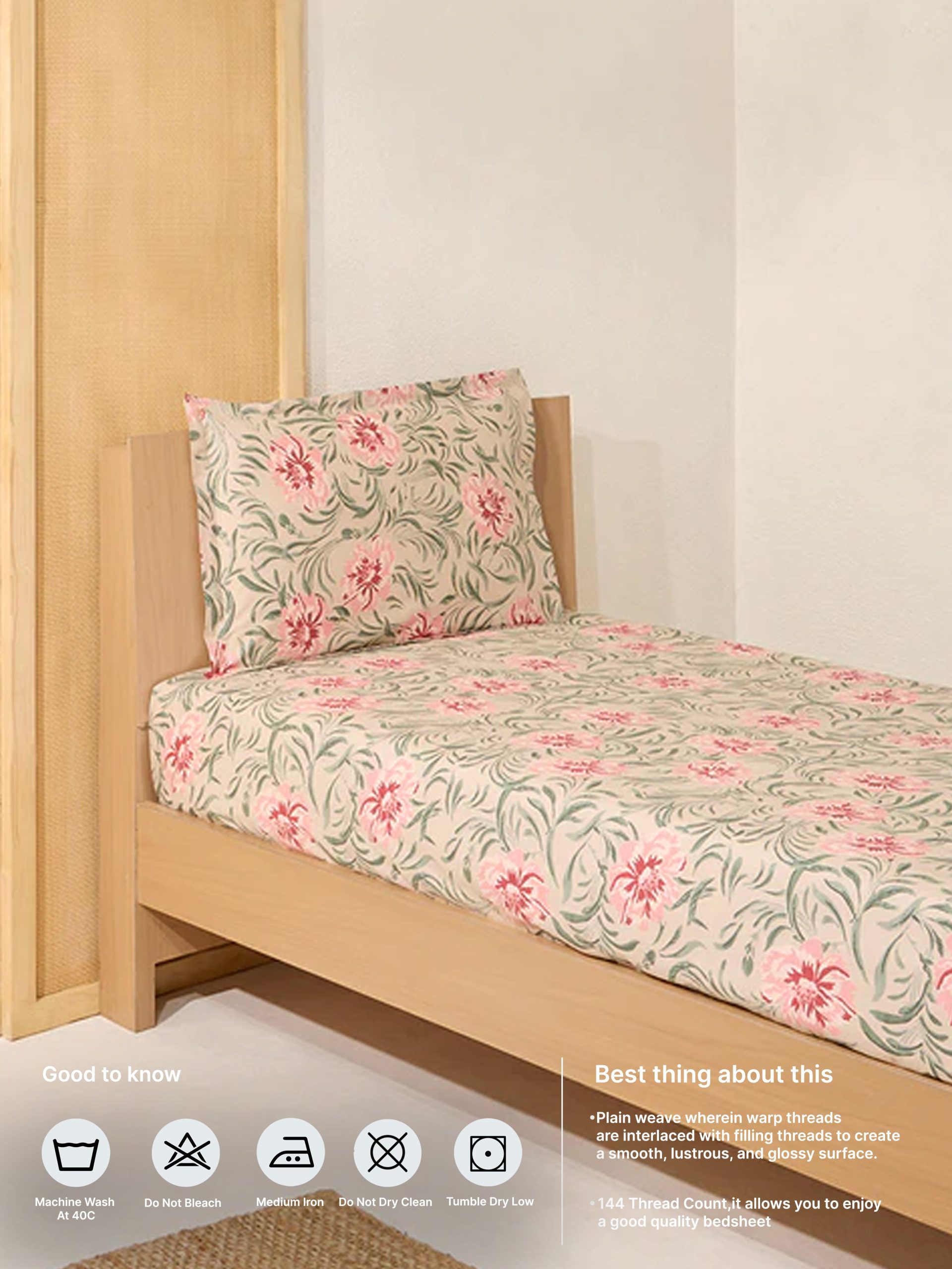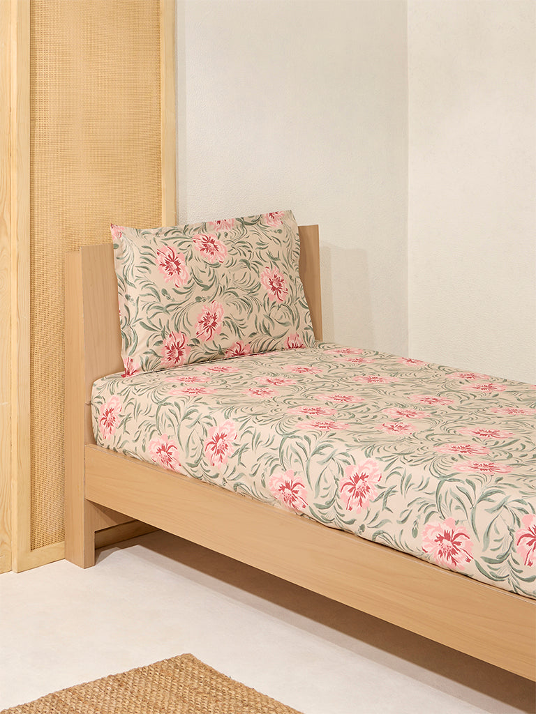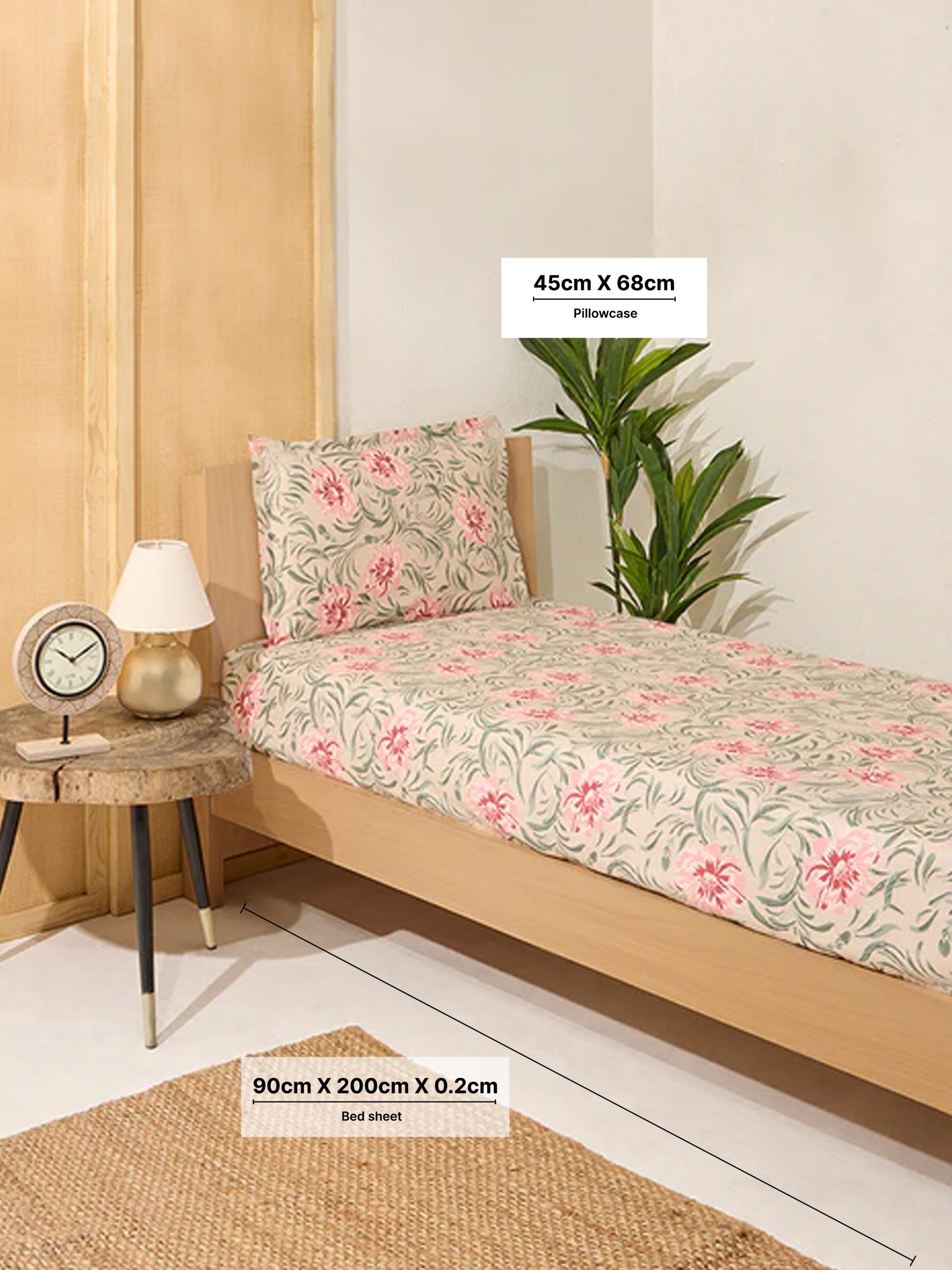 Inspired by the serenity of nature. this single bed fitted sheet and pillowcase set from Westside Home brings a touch of earthy elegance to your bed. The soft beige base. decorated with a graceful foliage print. enhances your bedroom with its understated beauty and natural charm. Designed for a secure fit and lasting comfort. this fitted sheet is a versatile addition to your home. offering both a snug and functional solution for everyday use. Bring the outdoors in with this stylish. easy-to-maintain piece that blends effortlessly into any space.