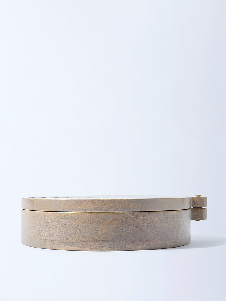 Westside Home Beige Leaf Etched Wooden Spice Box