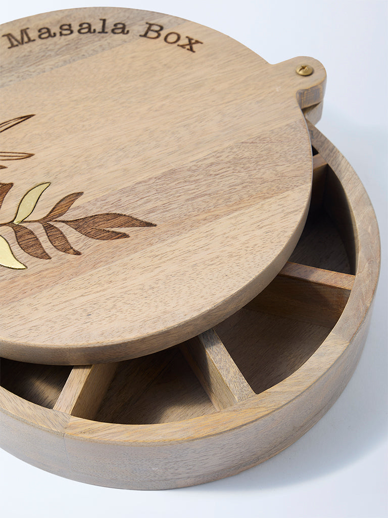 Bring order and elegance to your kitchen with this beige wooden spice box from Westside Home. Adorned with etched leaf motifs. it combines artisanal beauty with everyday function. Multiple compartments keep essential spices neatly organized. making cooking both efficient and stylish. Crafted in a smooth wooden finish. it is durable enough for daily use yet refined enough to display proudly on your counter. A timeless storage piece that infuses the heart of the home with warmth and craft.