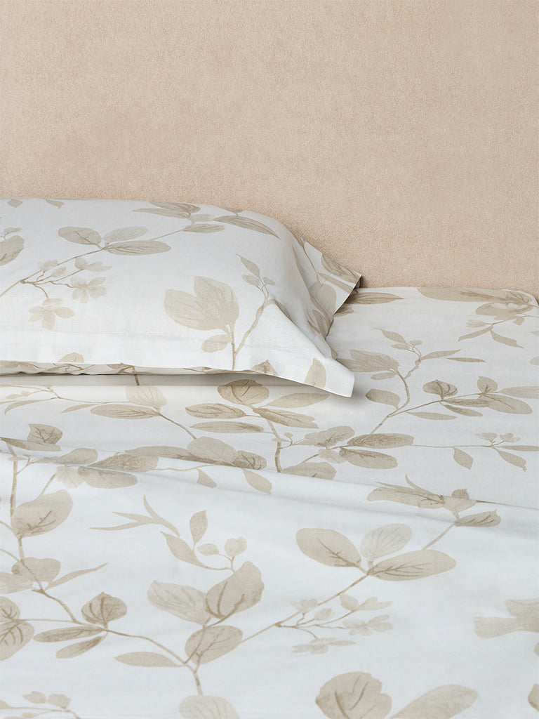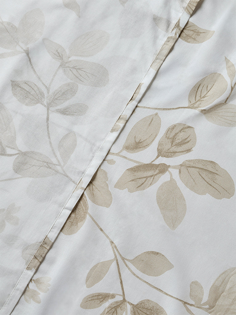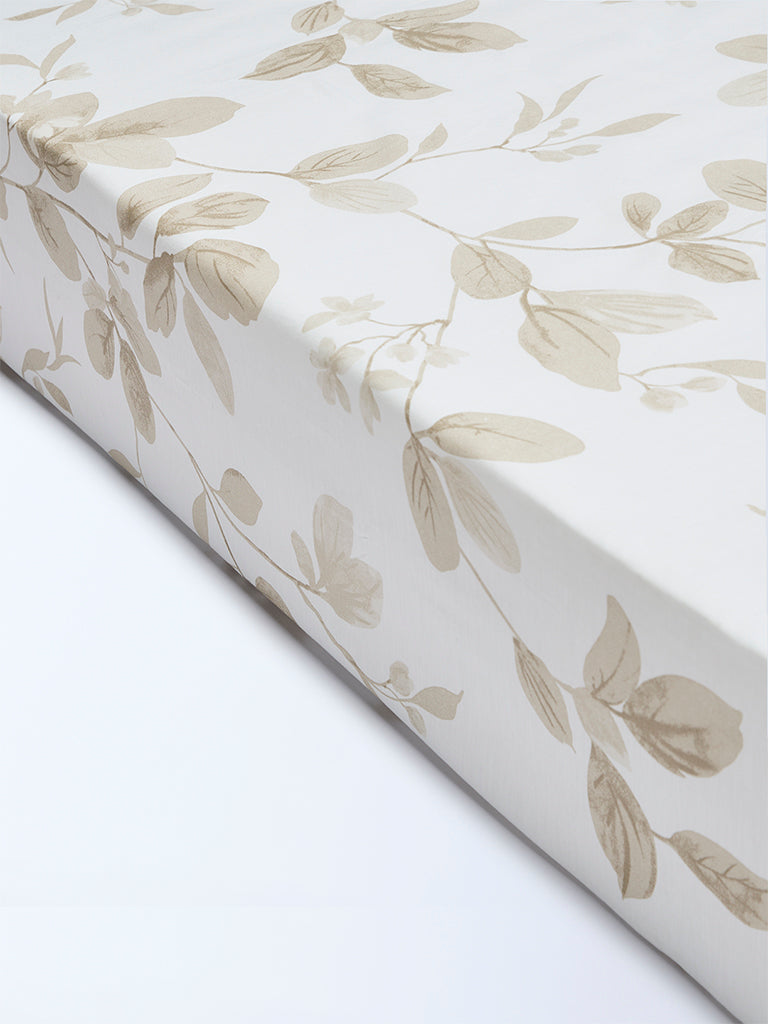 Westside Home Beige Leaf Printed King Bed Sheet Set