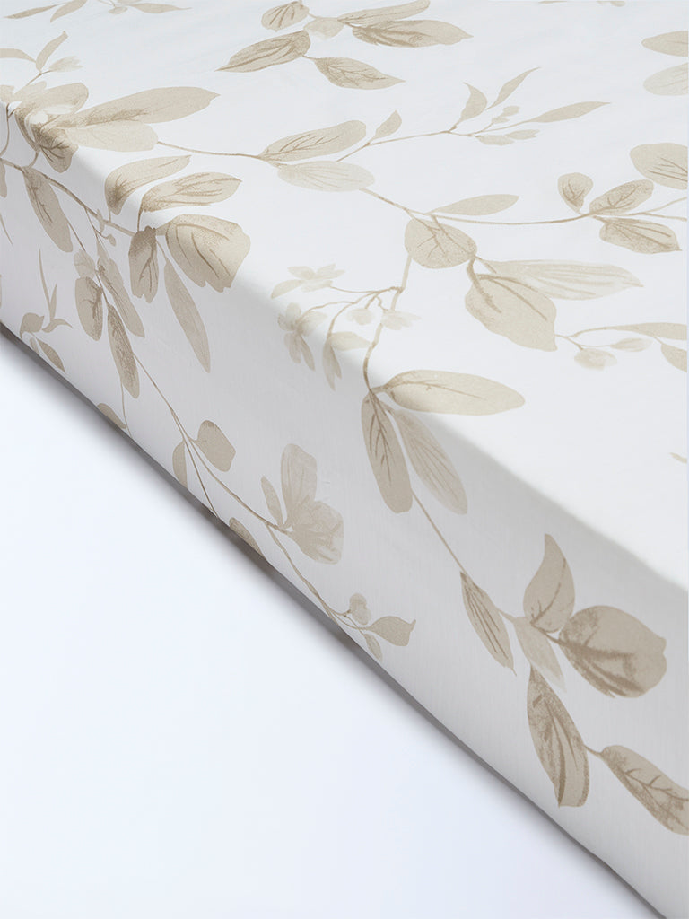 Westside Home Beige Leaf Printed Queen Bed Sheet Set
