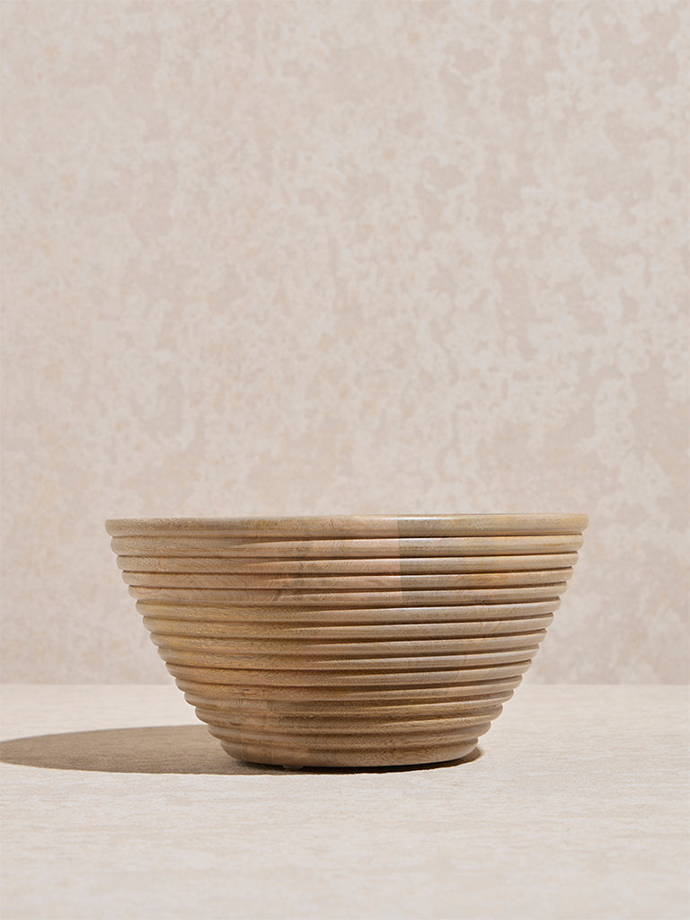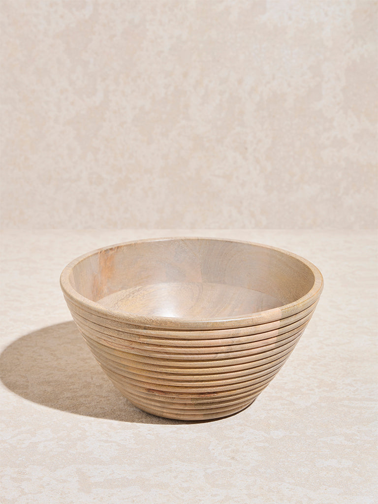 Westside Home Beige Ribbed -Textured Wooden Bowl – Large