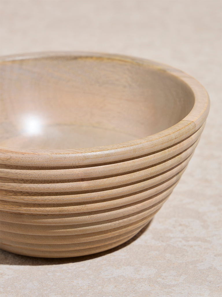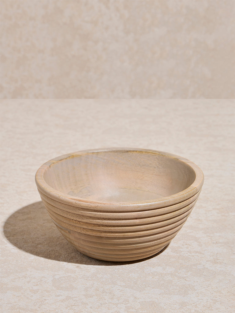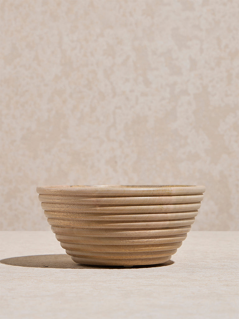 Westside Home Beige Ribbed -Textured Wooden Bowl – Small