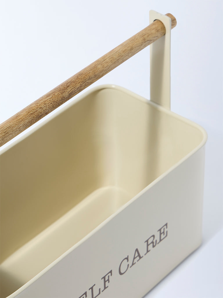 Organise your daily rituals in style with the beige self-care caddy from Westside Home. thoughtfully designed to bring both function and calm to your vanity. bathroom. or bedside. Crafted in a soft neutral tone that blends effortlessly into any interior. this compact organiser is perfect for storing skincare essentials. bath accessories. or everyday beauty tools. With a divided layout and easy-carry handle. it offers convenience without compromising on aesthetics.