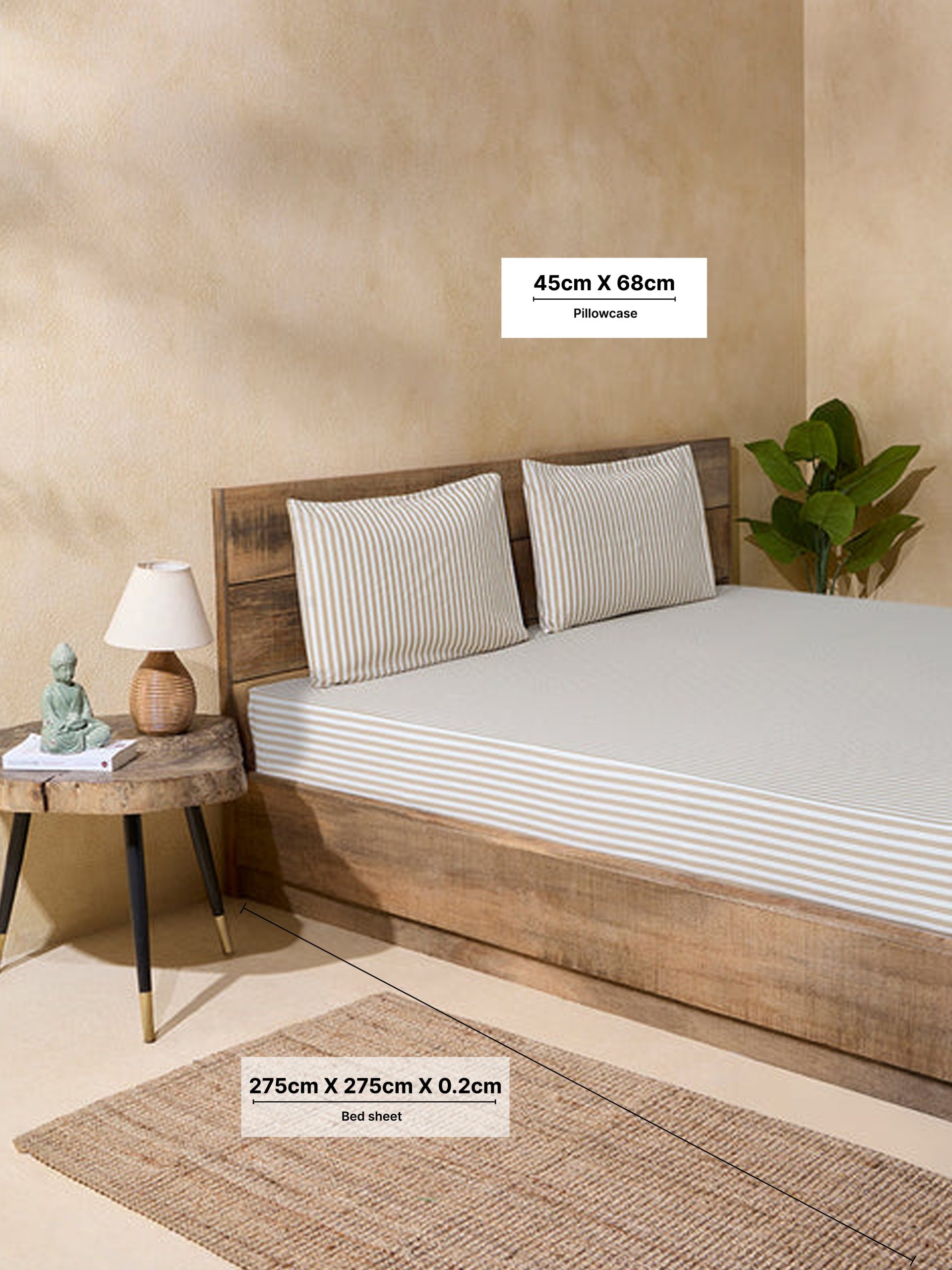 Create a timeless. elegant vibe with this king bed flat sheet set from Westside Home. The soft beige hue. paired with subtle stripe patterns. adds a touch of sophistication and warmth to your bedroom. Made from soft. breathable fabric. the flat sheet drapes smoothly over your bed. and the pillow covers complete the refined look. Perfect for a cozy. stylish retreat. it’s an ideal choice for those who love understated luxury.