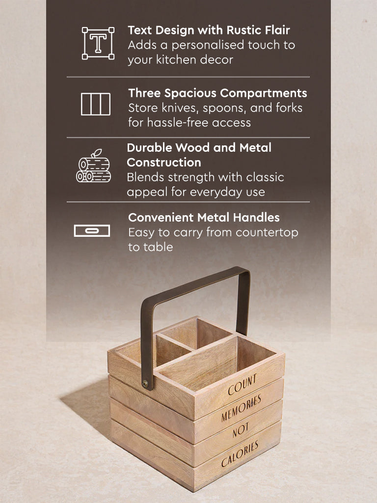 Westside Home Beige Text Design Wooden Cutlery Caddy