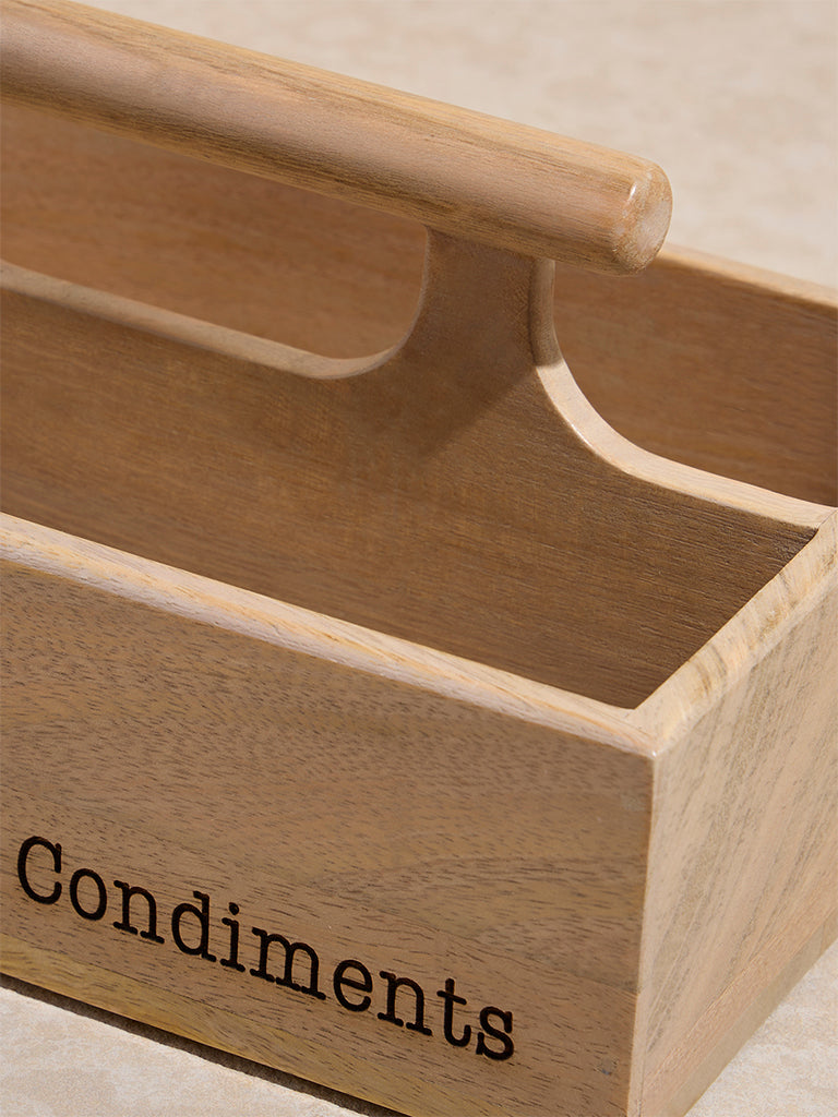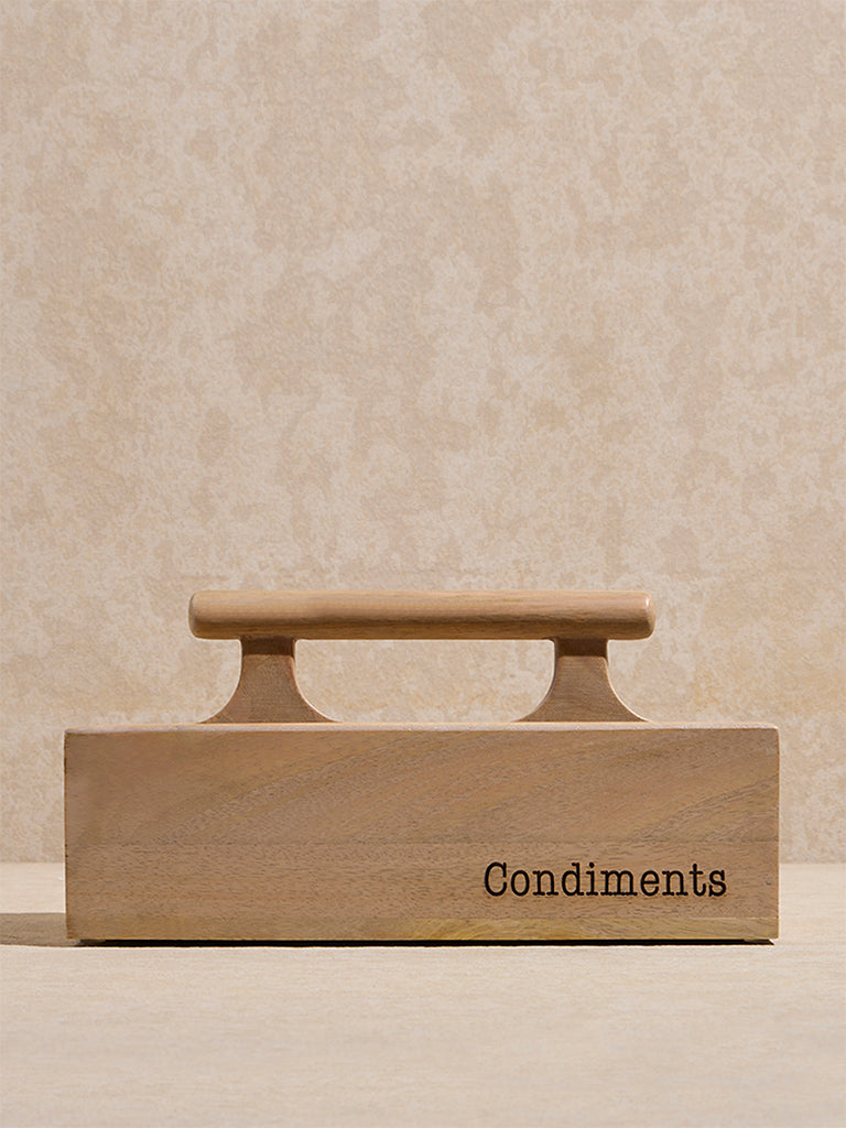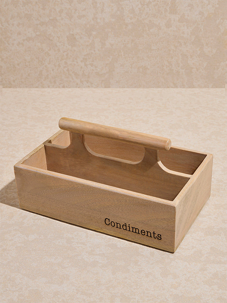 Give your dining table or kitchen counter a tidy upgrade with this beige wooden condiments caddy from Westside Home. With neatly divided sections and an easy-carry handle. it’s built for both functionality and rustic charm. Whether you’re organising sauces. seasonings. or cutlery. this caddy keeps essentials within reach??stylishly sorted and always ready to serve.